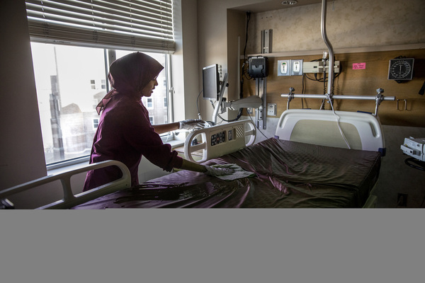 Dressed in her housekeeping uniform, she headed to the room of a recently discharged patient. She stripped the bed, removing the bedsheets and pillowcases. Then she tackled the bathroom, bending low to scrub the toilet. She stood up briefly to admire her work _ a satisfied look on her makeup-less face.
