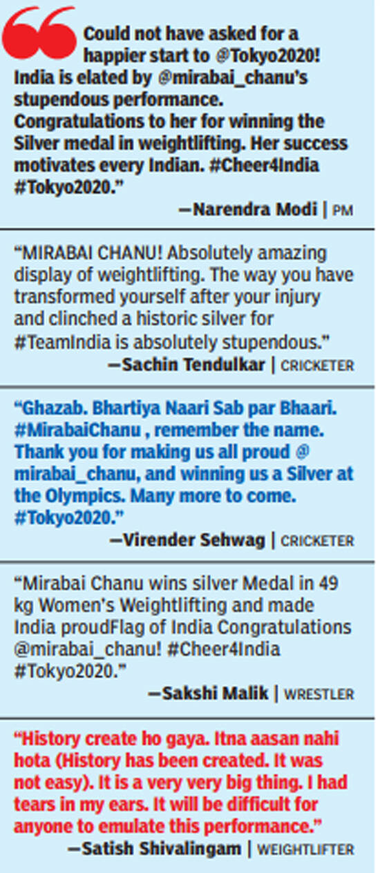Chanu’s medal ended a 21-year-old drought for a weightlifting medal at the Olympics for India.