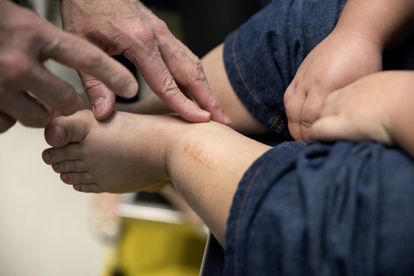 CHICAGO _ Sitting on a bed at Lurie Children's Hospital, Levi Krystosek, 10, rubbed a sore spot on his foot.