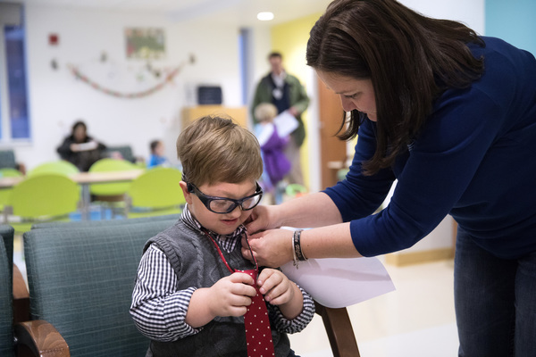 During his most recent visit in January, Levi arrived at Lurie snappily dressed in a red tie and gray vest over a checked shirt. Fastidious about his sleeves, he kept asking his mother to button and roll them just so.