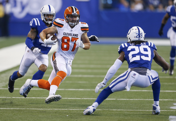 Kizer connected with rookie tight end David Njoku for a 1-yard touchdown, capping a 10-play, 75-yard drive with 27 seconds left in the first half.