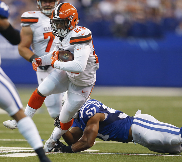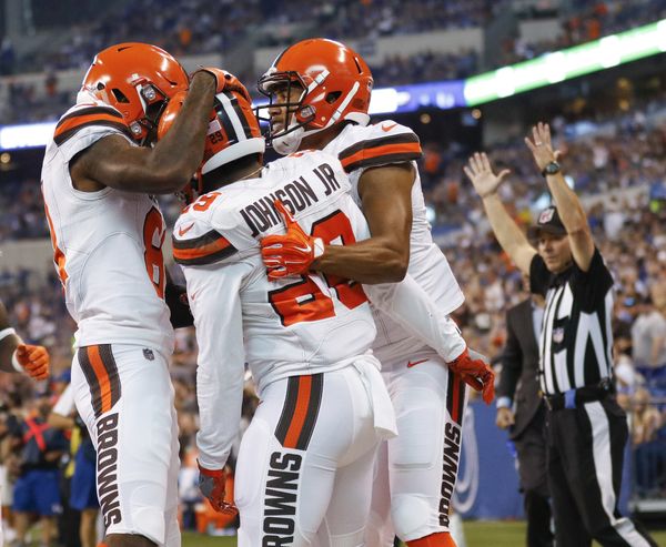 In between those scores, Browns running back Duke Johnson made three defenders miss and leaped through the front left corner of the end zone for a 19-yard rushing touchdown. The highlight play tied the score 7-7 with 13:22 left in the second quarter.