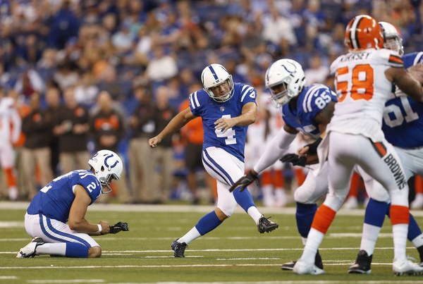 The Browns' defense positioned itself to get a stop during the next series, but on fourth-and-2, the Colts baited safety Derrick Kindred into a neutral-zone infraction and gained a free first down. They took advantage of the miscue when Adam Vinatieri made a 33-yard field goal to build the Colts' lead to 31-14 with 10:18 left in the fourth quarter.