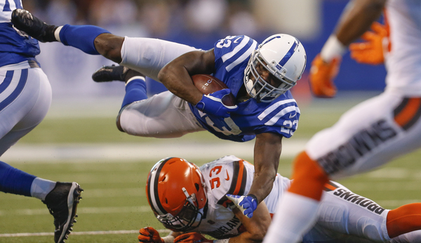 Hilton beat the coverage of Taylor again and broke off a 61-yard, catch-and-run touchdown with 5:14 left in the second quarter. Hilton finished with seven catches for 153 yards and a touchdown.
