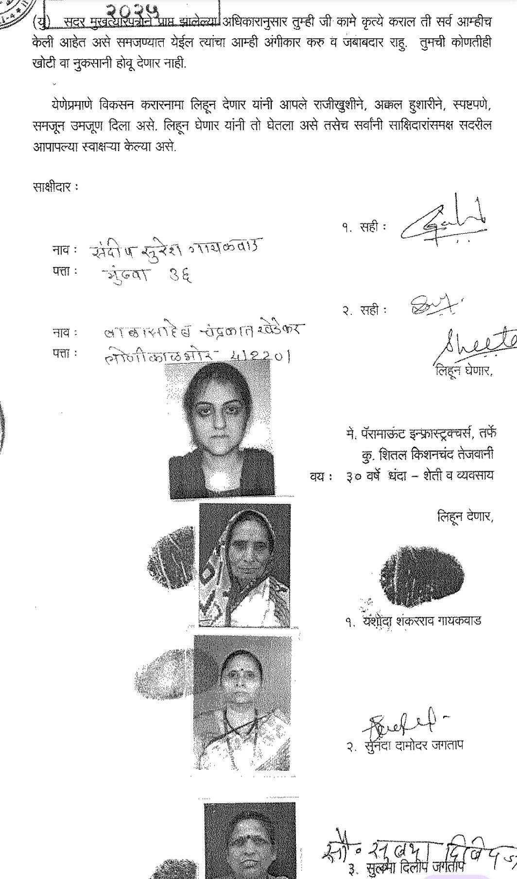 Seventy-year-old Kalidas Gaikwad, a resident of Mundhwa and one of the descendants of the original Watandar families, recalled how it began. “In 2006, a broker named Umesh More came to us on behalf of Sheetal Tejwani from Paramount Infrastructures and introduced us to her. When we met her, she said she would help us get our land regranted. She took signatures from around 272 members of the 26 families who have their names in the property card and even gave Rs 5,000 to Rs 10,000 to one representative from each family.”
