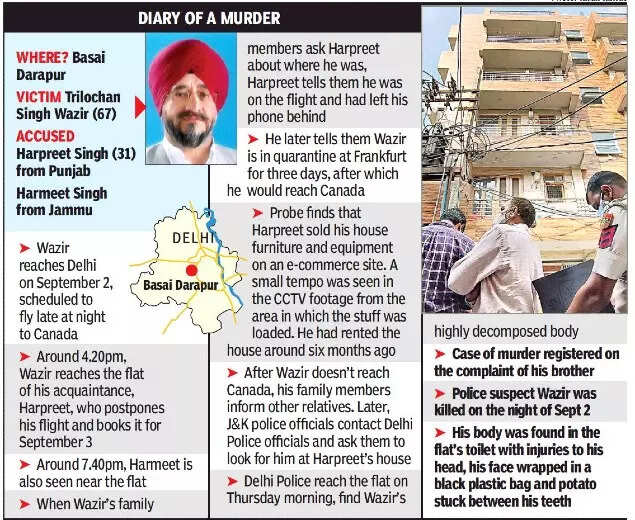 Wazir had reached the national capital on September 2 and was scheduled to travel to Canada the same night. He had gone over to the house of an acquaintance, Harpreet Singh, who is also the prime suspect in the case, according to senior Delhi Police officials.