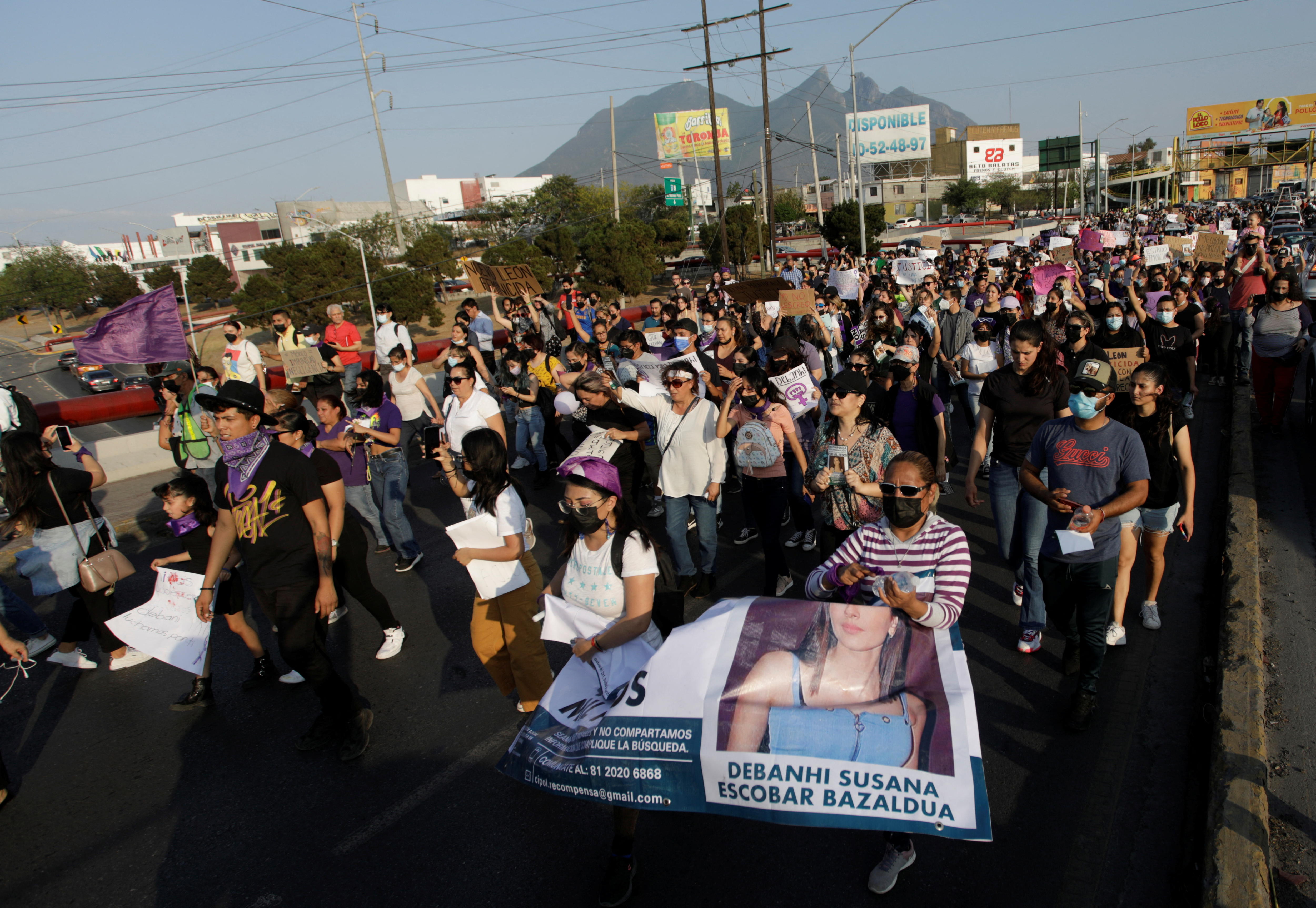 The protesters demanded the resignation of the state secretary of security, Aldo Fasci, and carried signs with the names and faces of Debanhi and other local women who have gone missing or been found dead recently.