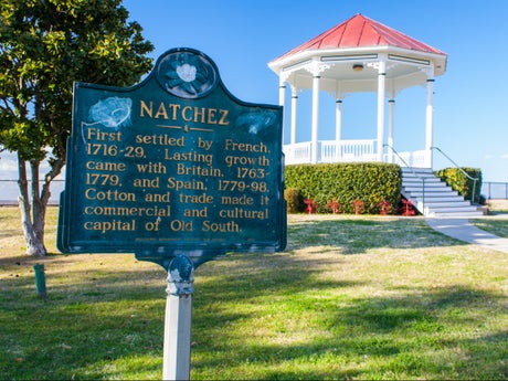 Natchez is located on the Mississippi River, on the western edge of the state, with Louisiana just across the border.