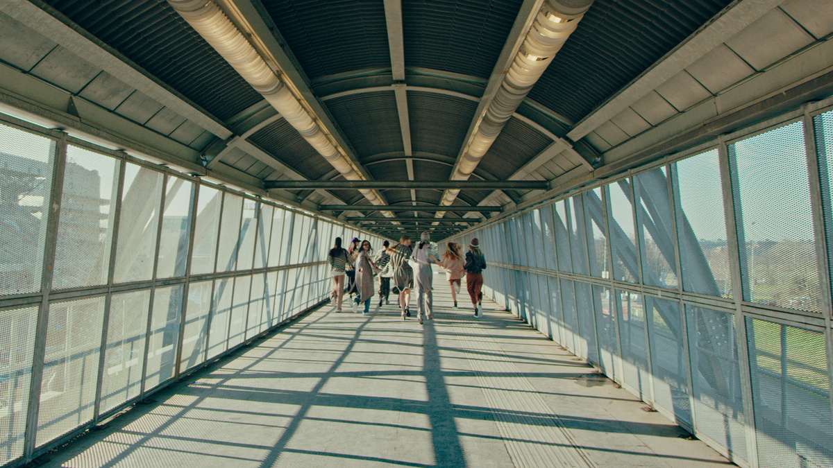 Filmed at Milan's Assago Forum, a venue that has been shut for months, models re-enacted social gatherings from bowling games to catch-ups with friends.