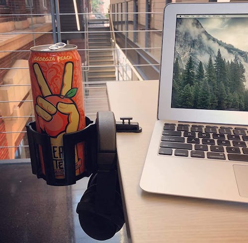 Prevent technological mishaps with this anti-spill cupholder, which keeps liquids far away from your tablet and laptop. Just attach it to desks that are two inches thick or smaller, and its polyethylene screw caps keep it in place without scratching surfaces. It'll fit cups, cans, and glasses of multiple sizes. You can even use it as a phone holder when you're trying to minimize distractions.