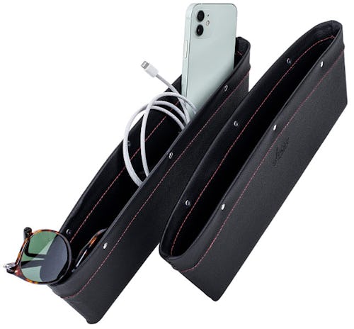 This car seat gap organizer keeps your accessories within reach while you drive. Its adjustable design means it'll work with a wide variety of vehicles, and it's made of a vegan leather material that's totally waterproof. When you buy, you'll receive spacers, which help you customize the pockets to better fit your car.