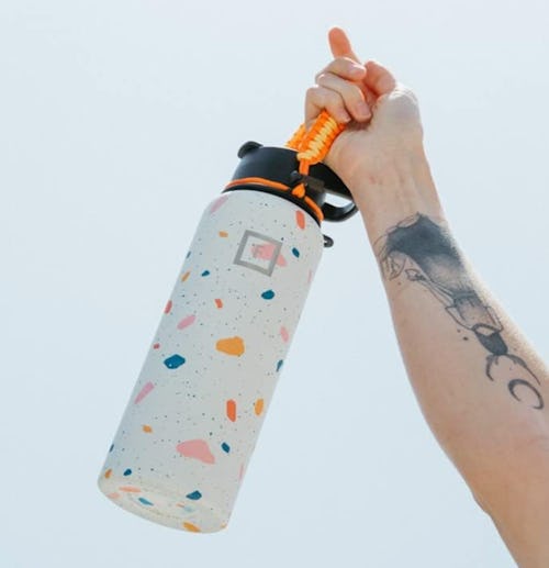 Amazon -This durable paracord handle makes it easier than ever to carry your water bottle from place to place. It’s made of a high-quality nylon material that holds up over time, and it’s completely waterproof. But that’s not all — it’s also equipped with a fire starter, a compass, and a whistle, so you’ll be more than prepared for your next outdoor adventure.