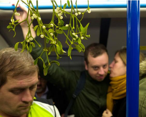 Notorius for being sullen commuters who avoid eye contact with one another, Londoners have had mixed reactions to the berried plants, which are traditionally hung up around the festive season for people to kiss under.