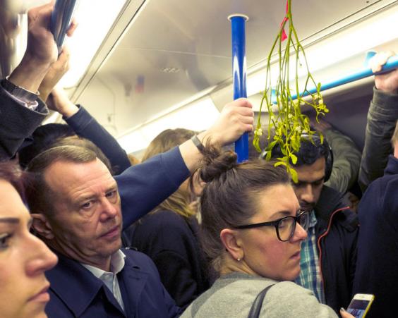 Pictures on MistleTube’s website show some commuters admiring the mistletoe, while others look decidedly unamused.
