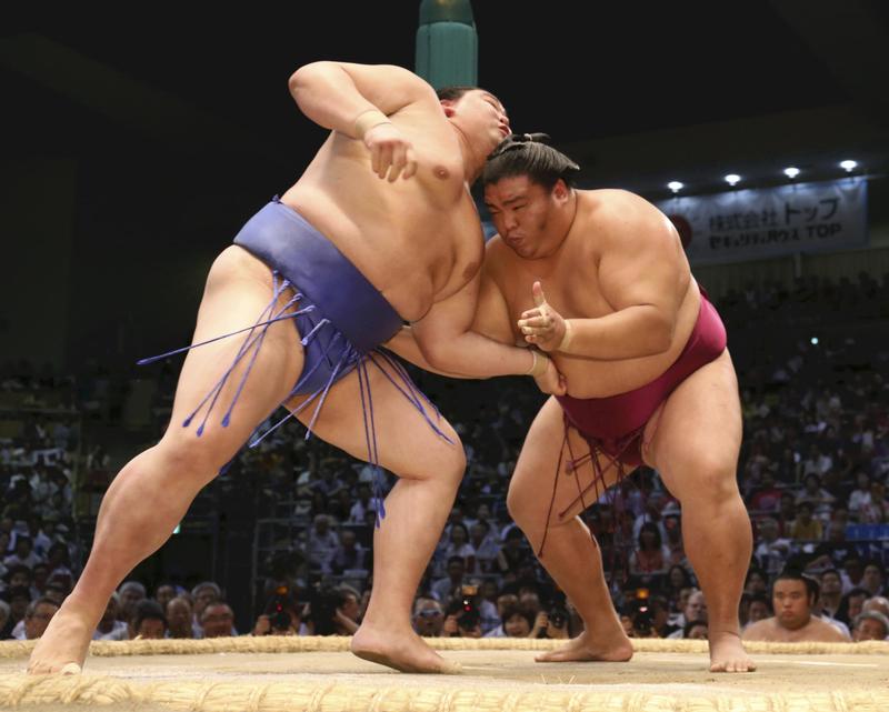 Unbeaten sekiwake Mitakeumi maintained his winning streak from opening day of the Nagoya Grand Sumo Tournament on Friday, while ozeki Tochinoshin suffered his first loss.