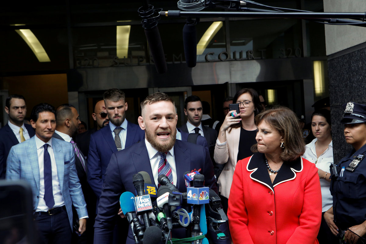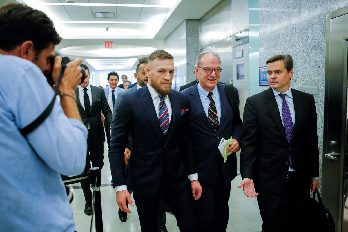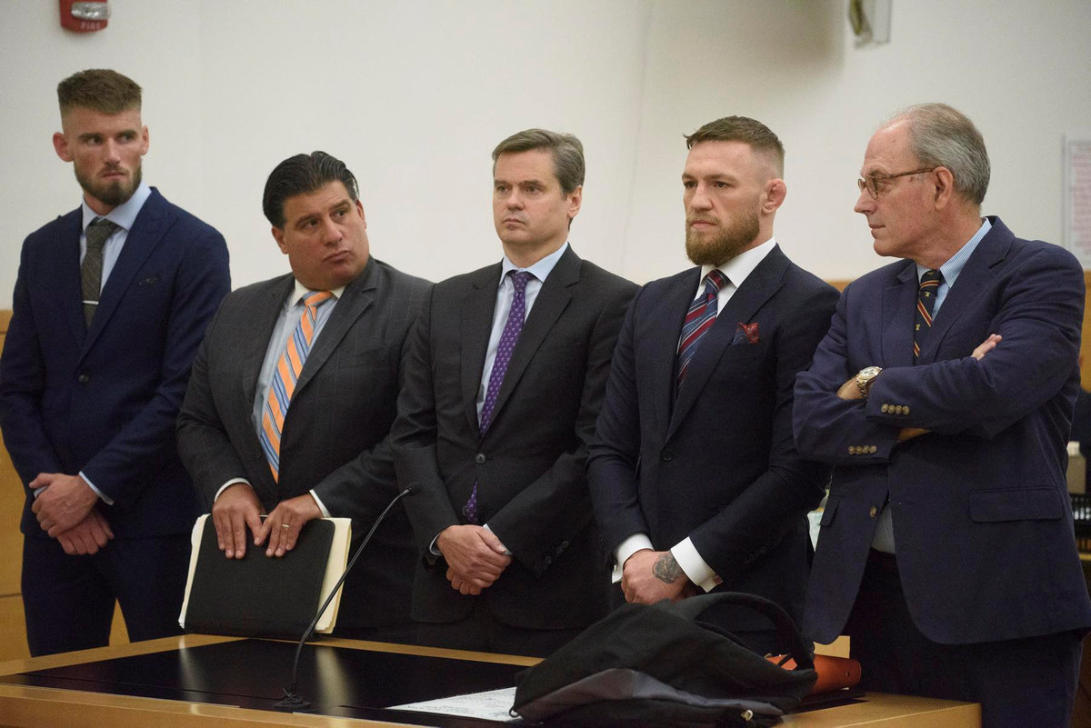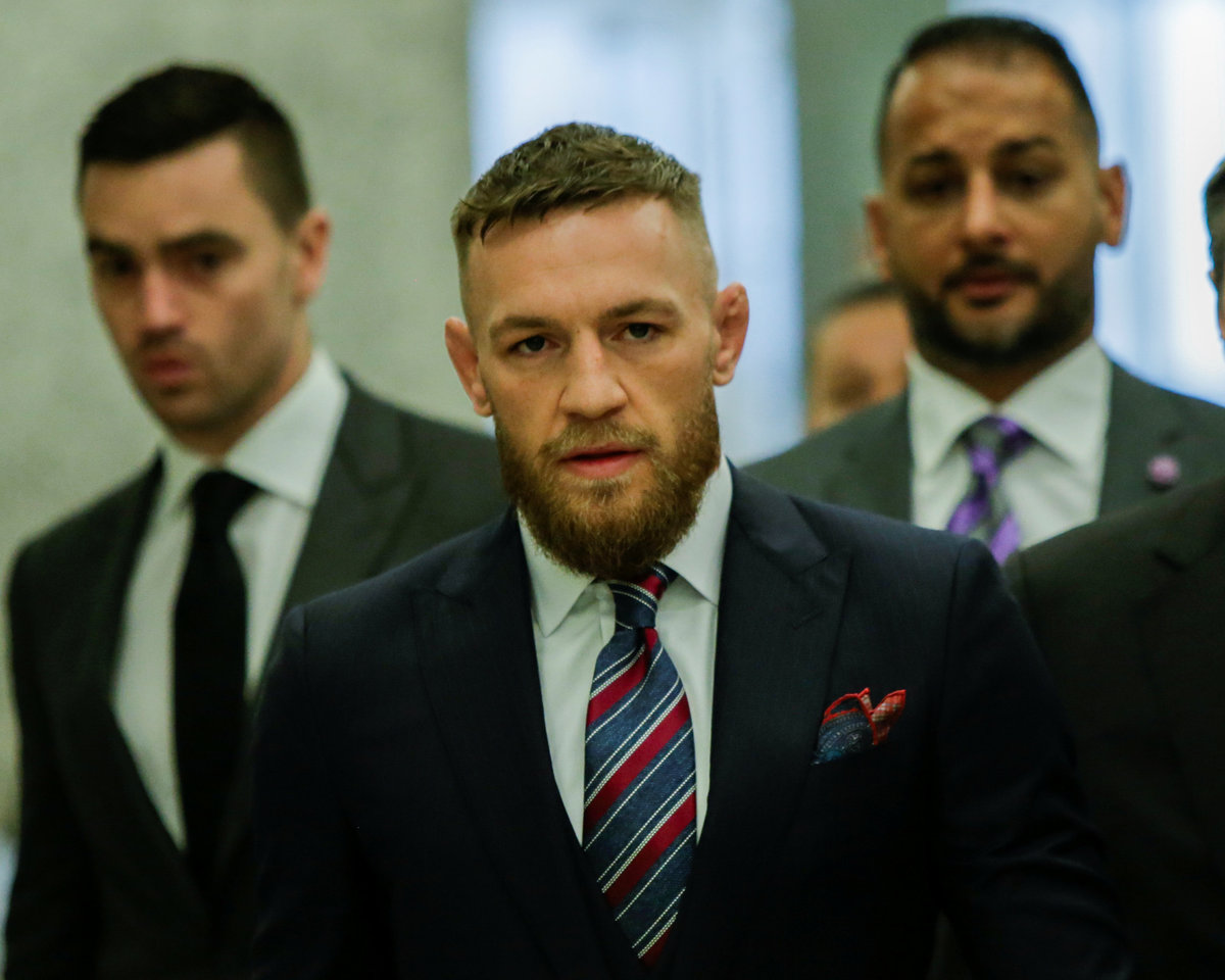 McGregor, dressed in a dark navy suit, was stone-faced throughout the court proceeding. He will avoid prison as a result of his agreement, which calls for him to serve five days of community service, attend an anger management program and pay for the damages he caused.