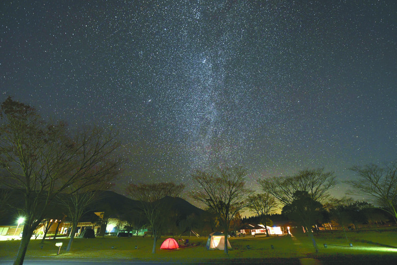 KOBAYASHI, Miyazaki -- The dark night sky was sprinkled liberally with countless stars. In the middle of my vision was the Milky Way, dividing the sky in two from northwest to southeast, with the Andromeda galaxy sparkling on the left.