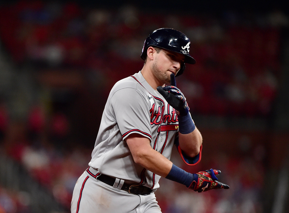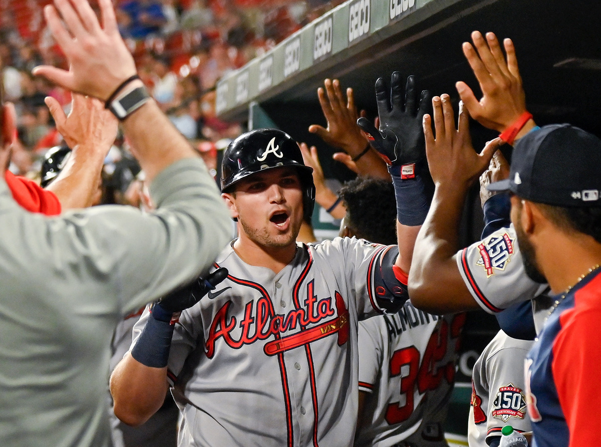 Austin Riley hit a two-run homer as the visiting Atlanta Braves scored six runs in the eighth inning to rally past the St. Louis Cardinals 8-4 Thursday night and complete a three-game sweep.
