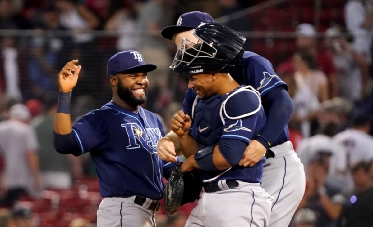 Francisco Mejia cleared the bases with a single during a four-run ninth inning as the visiting Tampa Bay Rays rallied past the slumping Boston Red Sox 8-4 in the opener of a key three-game series Tuesday night.