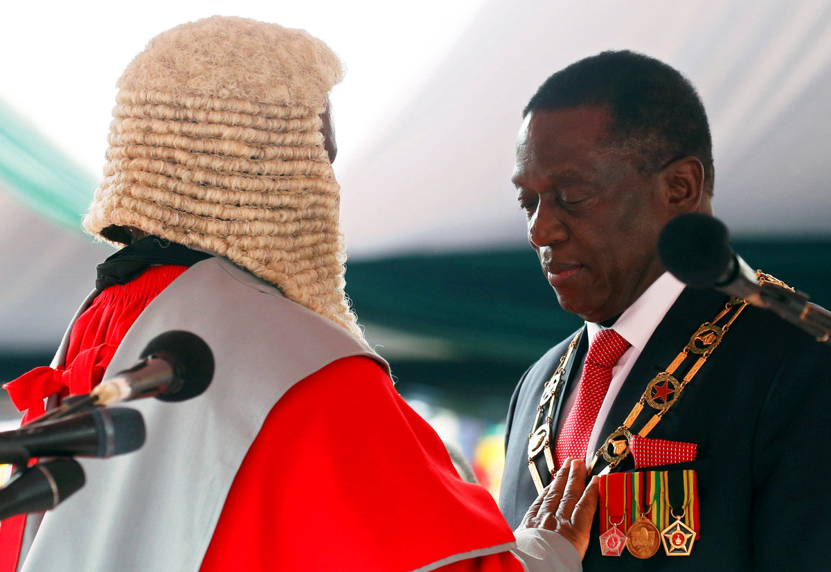 Sworn in days after the overthrow of Robert Mugabe, the 75-year-old former security chief promised to guarantee the rights of foreign investors and to re-engage with the West, and said elections would go ahead next year as scheduled.