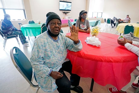 The center — located next to low-income elderly housing — has been shut down for months because of the pandemic, but staff stayed in close contact with residents, delivering weekly meals and care packages with water and toilet and tissue paper for people who can’t get to the store.