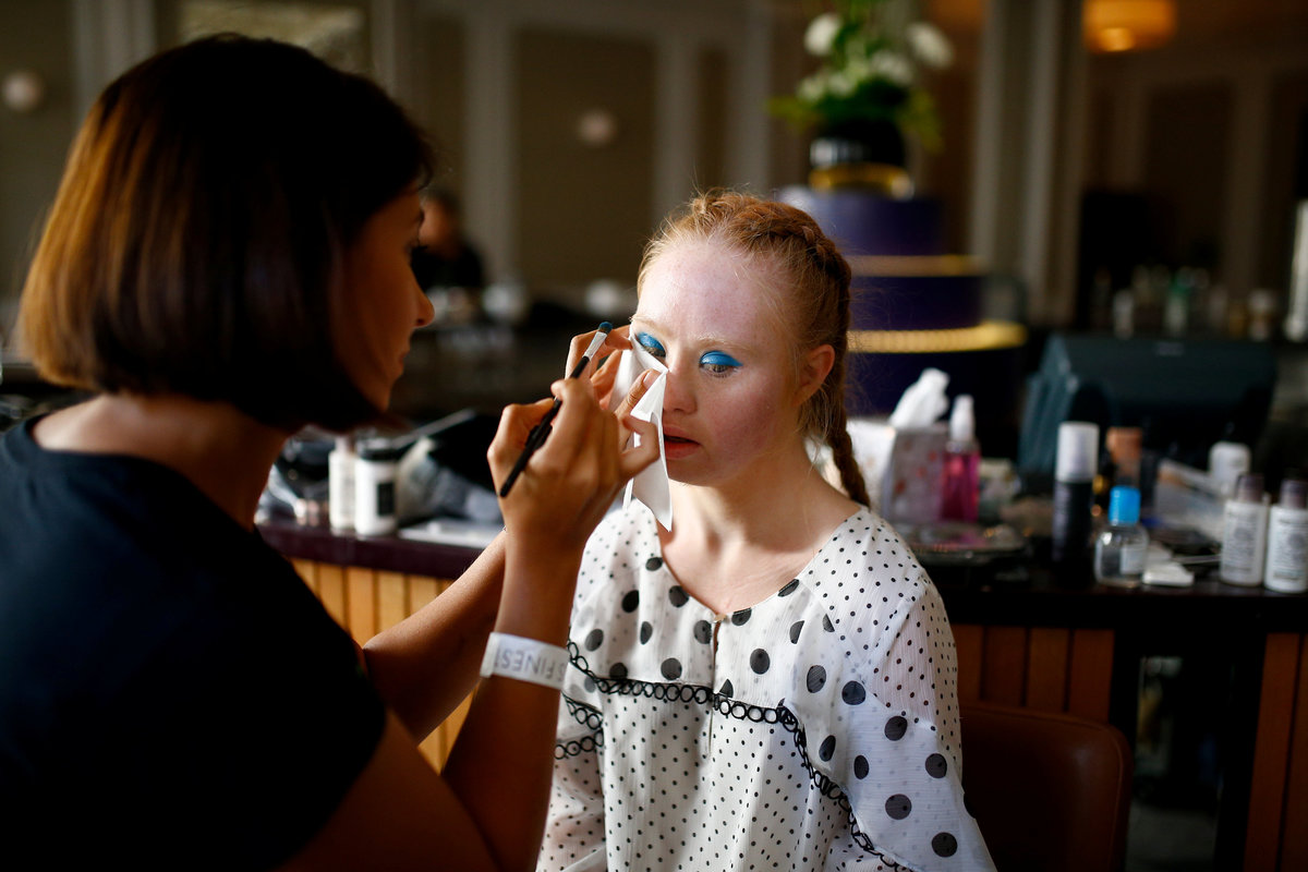 Model Madeline Stuart, who has Down's syndrome, is prepared backstage before the Colleen Morris presentation of the Spring/Summer 2019 collection during London Fashion Week in London, Britain, September 15, 2018. REUTERS/Hannah McKay