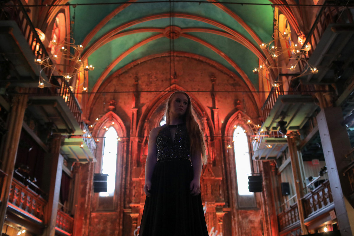 Model Madeline Stuart stands on a runway during a rehearsal at the Angel Orensanz Foundation during New York Fashion Week in New York City, U.S., September 9, 2018. REUTERS/Andrew Kelly