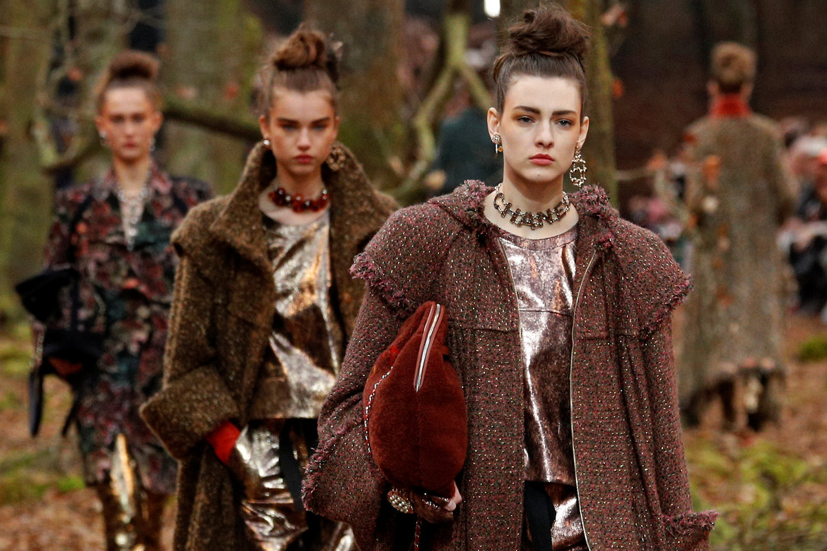 Models take a walk through wintry woods for Chanel