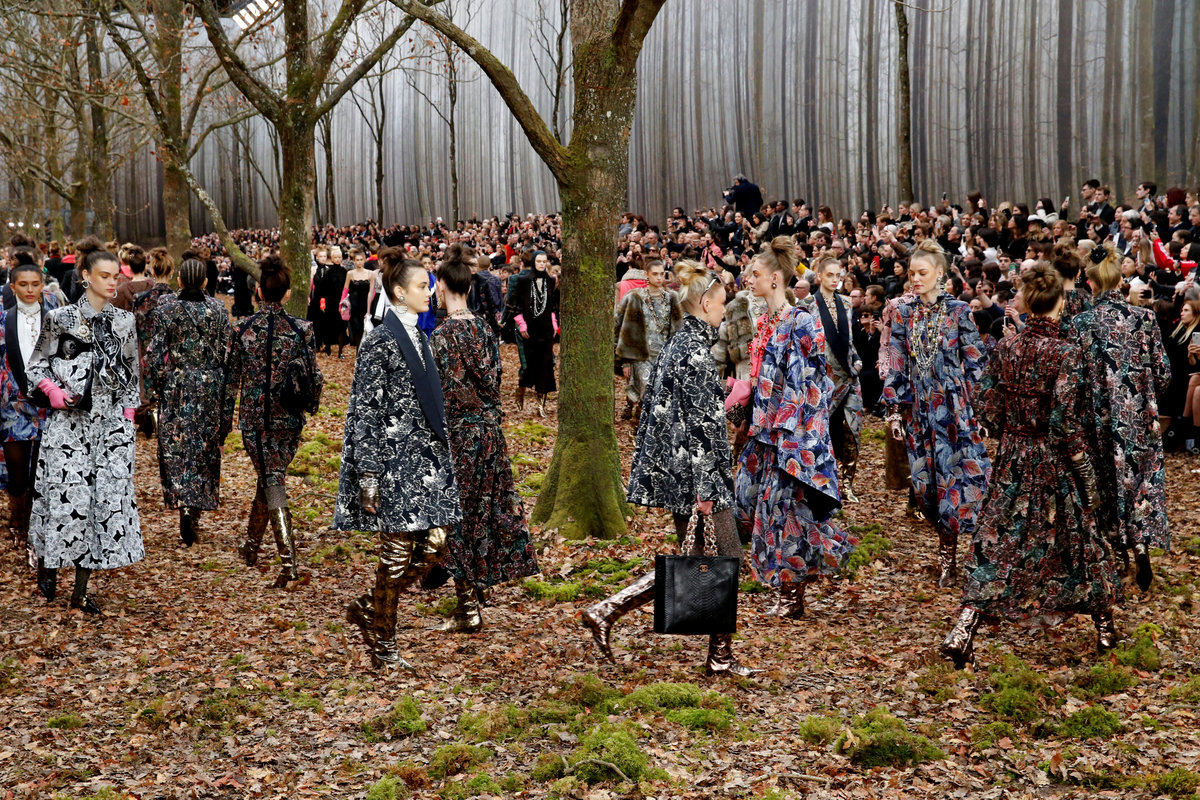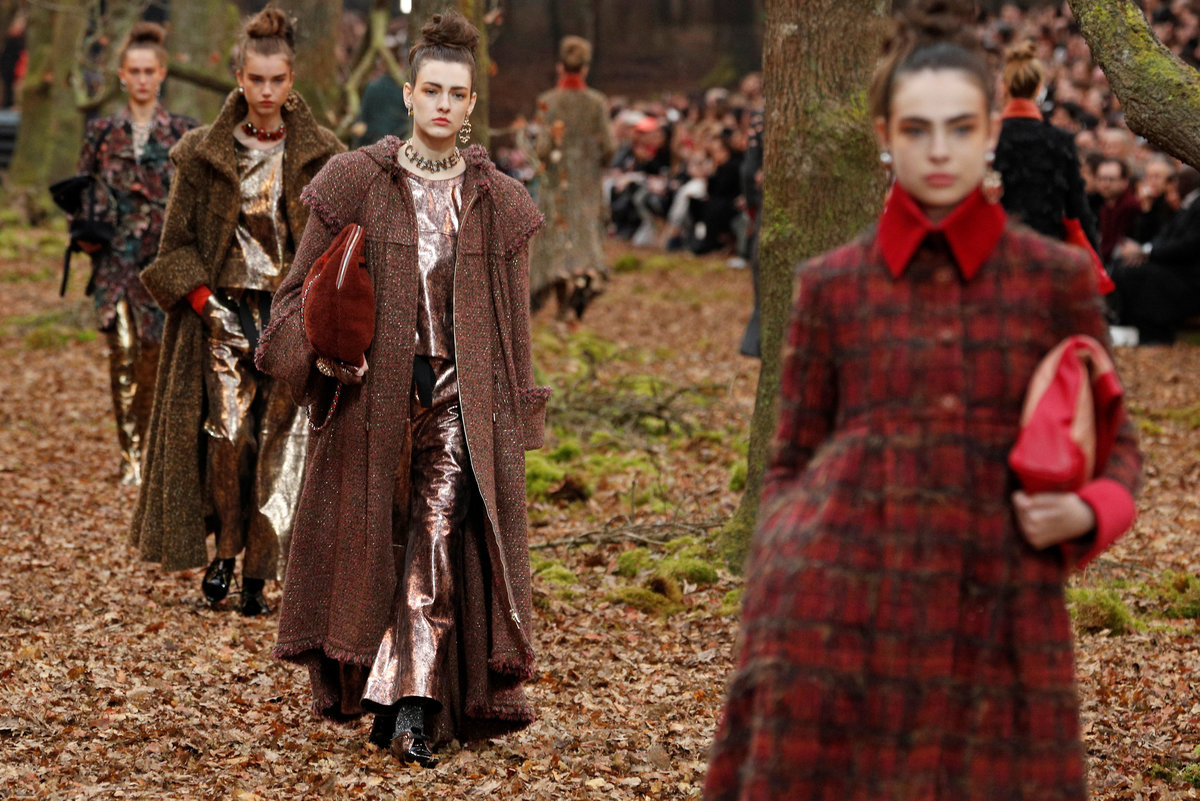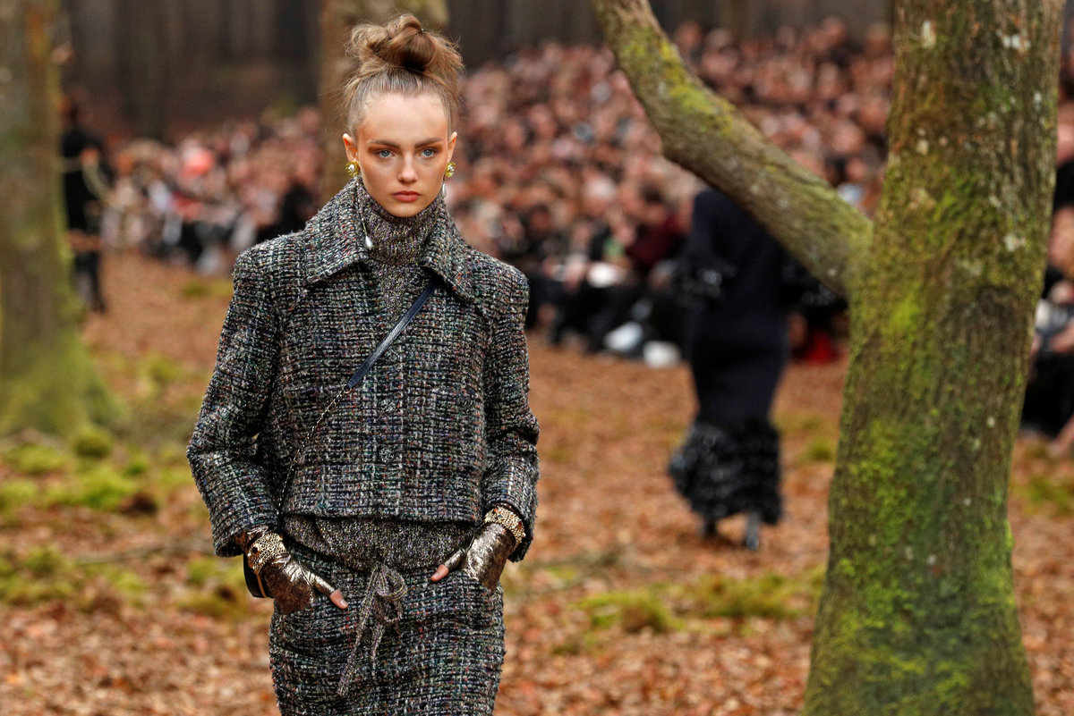 PARIS (Reuters) - Chanel wrapped up its models in leaf-motifed prints on Tuesday, celebrating autumn as it recreated a misty forest inside Paris's Grand Palais.