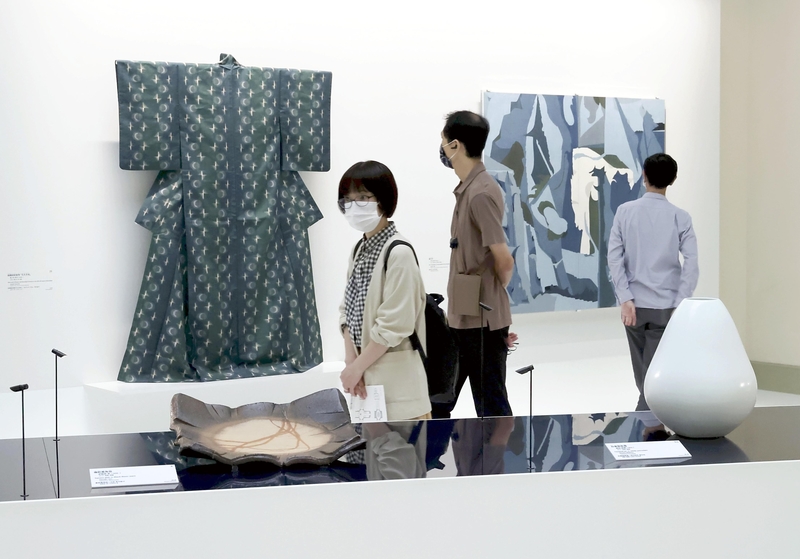 Among the art on display are "Faceted jar in white porcelain" by Akihiro Maeta, a ceramic artist and designated living national treasure, and "Sora no hibiki (Sound)" by metalsmith Fuminori Haruyama. The materials used included lacquer, glass and dyed fabric.