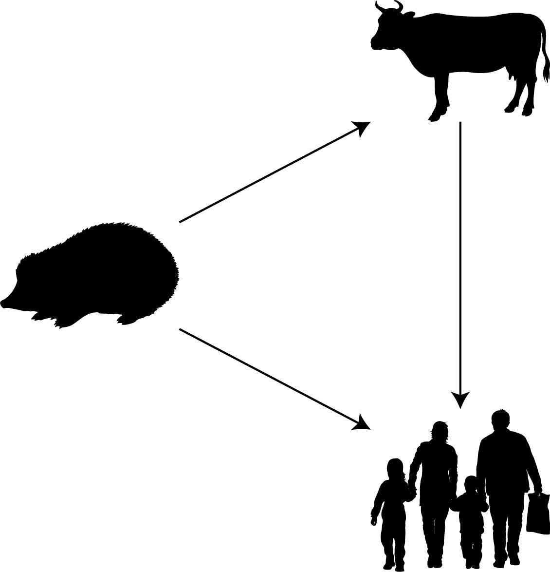 - Transmission from hedgehogs to secondary animal hosts, and then these hosts spread it to humans.