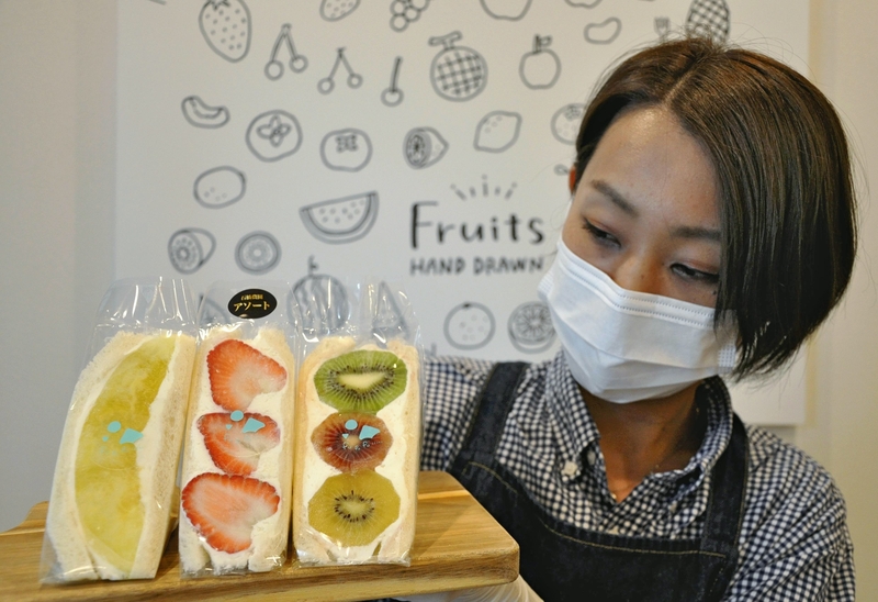 MATSUE -- Once photos of the fruit sandwiches of Fufufu Izumo located in Izumo, Shimane Prefecture, went viral on social media, customers began flocking to the shop to get their hands on the tantalizing diagonally cut sandwiches comprised of fluffy white bread enveloping plump, appetizing, locally grown fruits sumptuously embedded in fresh whipped cream.