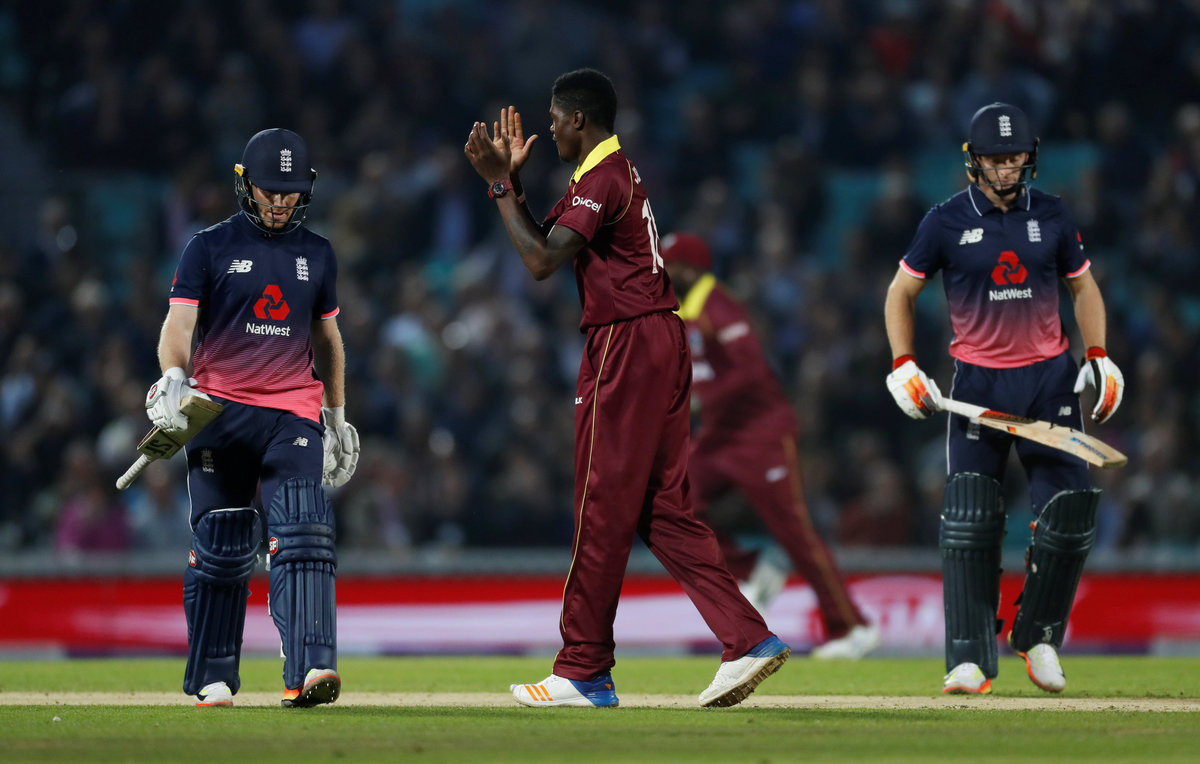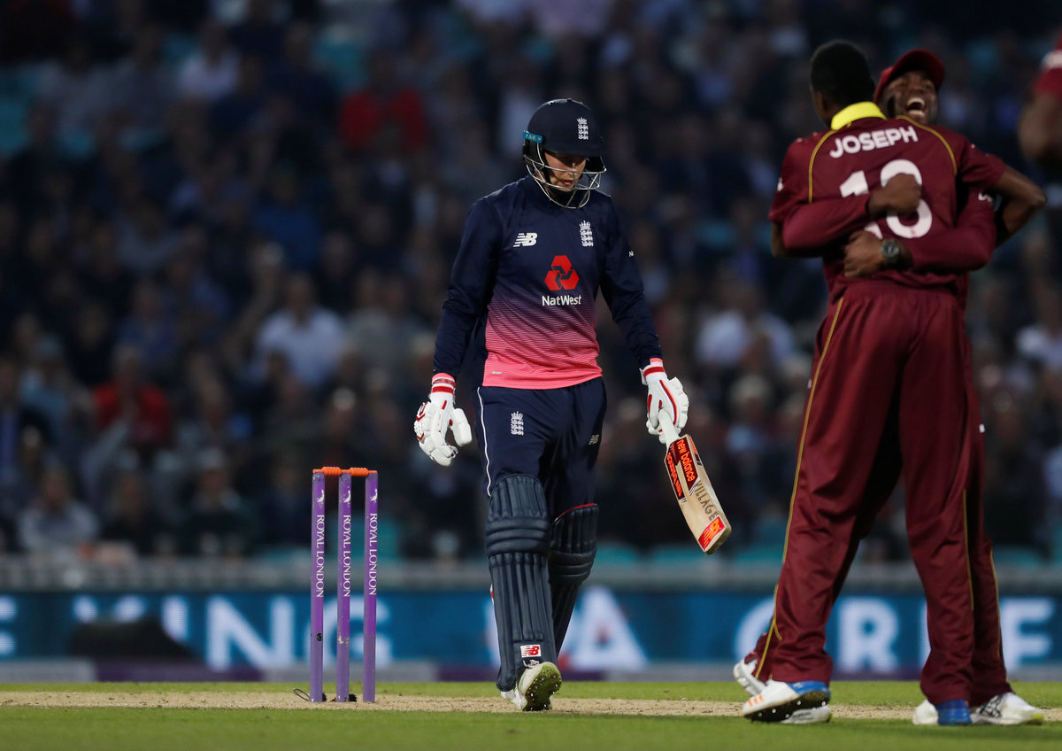 Opener Jason Roy hit his first ODI half-century for 11 innings before edging Alzarri Joseph to the keeper for 84.