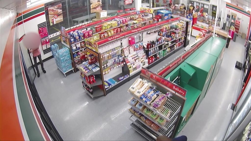 Security footage captured in March last year shows Ibrahim, dressed in a pink polo shirt, casually walking into the convenience store and picking up a bottle of water before doubling back for the energy drink.