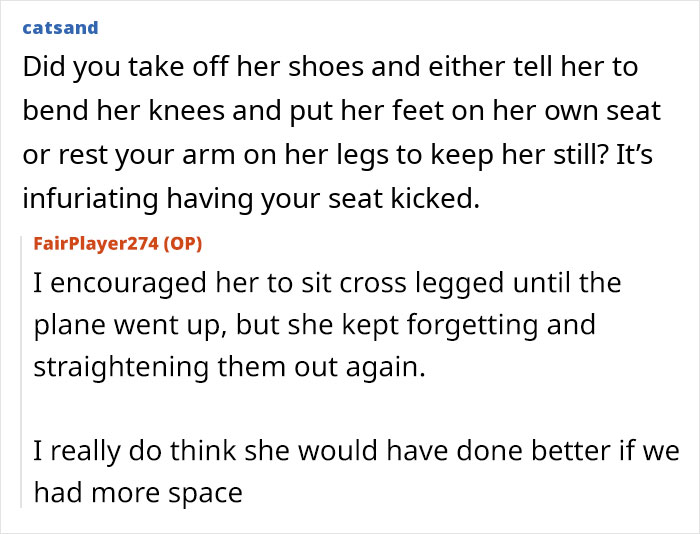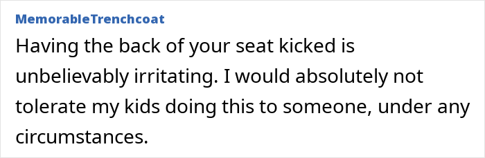 Others argued that allowing a child to kick someone’s seat is unacceptable, no matter the situation