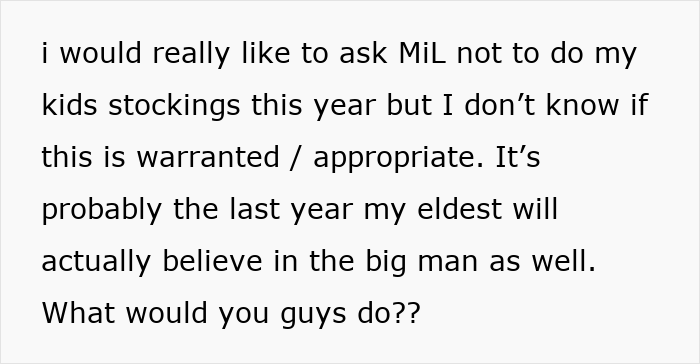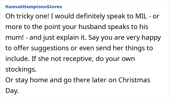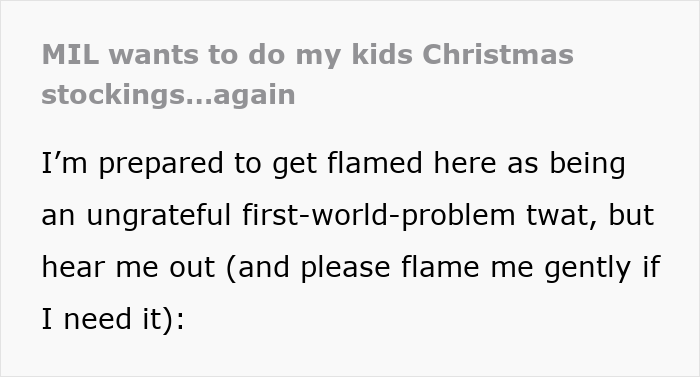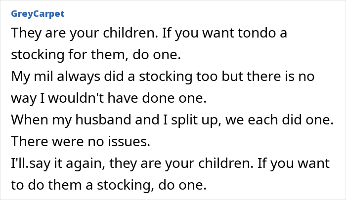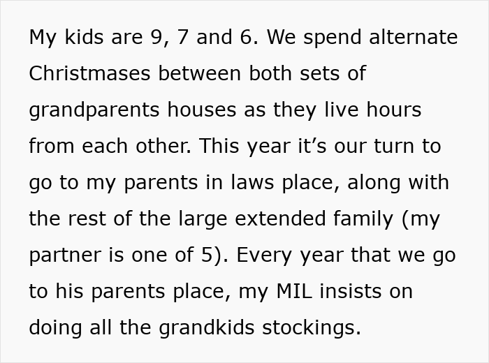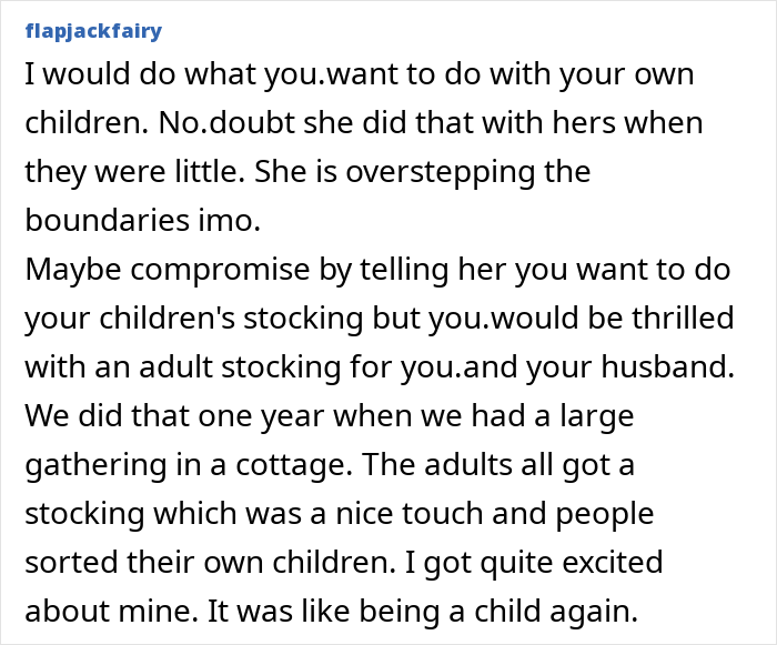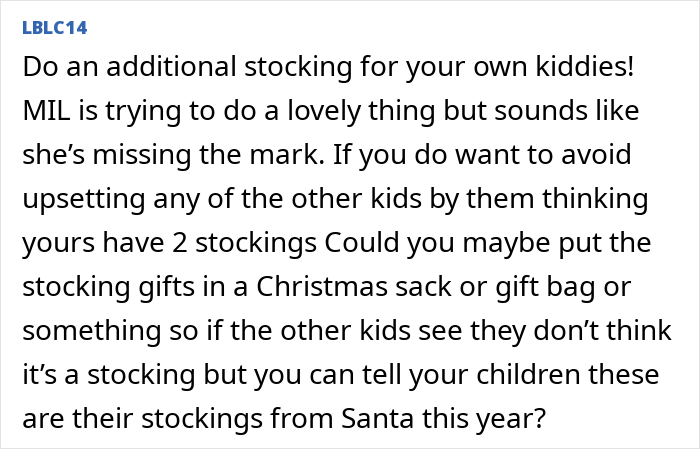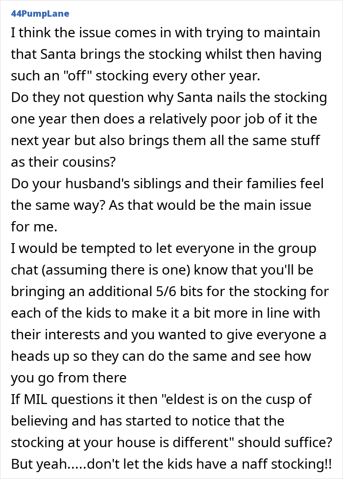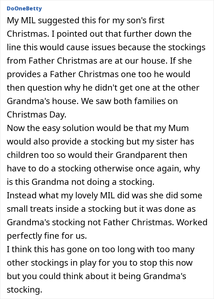 In this particular story, though, it seems like the mother-in-law missed that memo. The mother just wanted their kids to have stockings that felt special and personal, not a one-size-fits-all version of holiday cheer. So, what do you think? Should she speak up and start her own tradition, or let Grandma keep her festive routine for the sake of peace on Christmas morning?