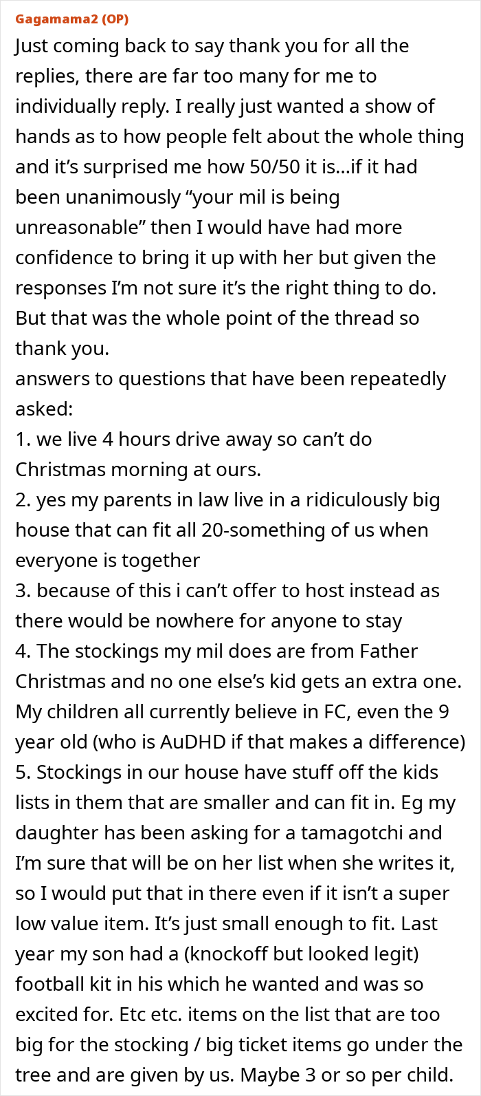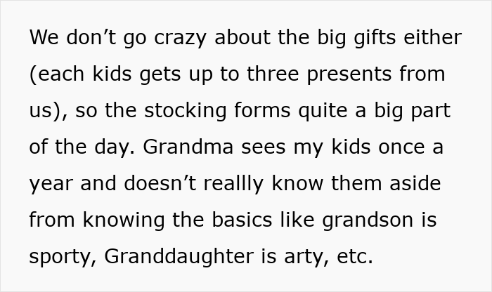Many people sympathized with the parent, agreeing that the mother-in-law’s generic gifts missed the point and emphasizing how meaningful Christmas traditions truly are