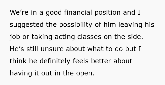 The OP decided to listen to the advice and spoke to her partner about the issue. That’s when he opened up about feeling jealous because he wasn’t getting to spend enough time with their daughter. He also felt left behind now that she was speaking Spanish. Even his job wasn’t fulfilling him anymore, and he envied the poster’s creative career.