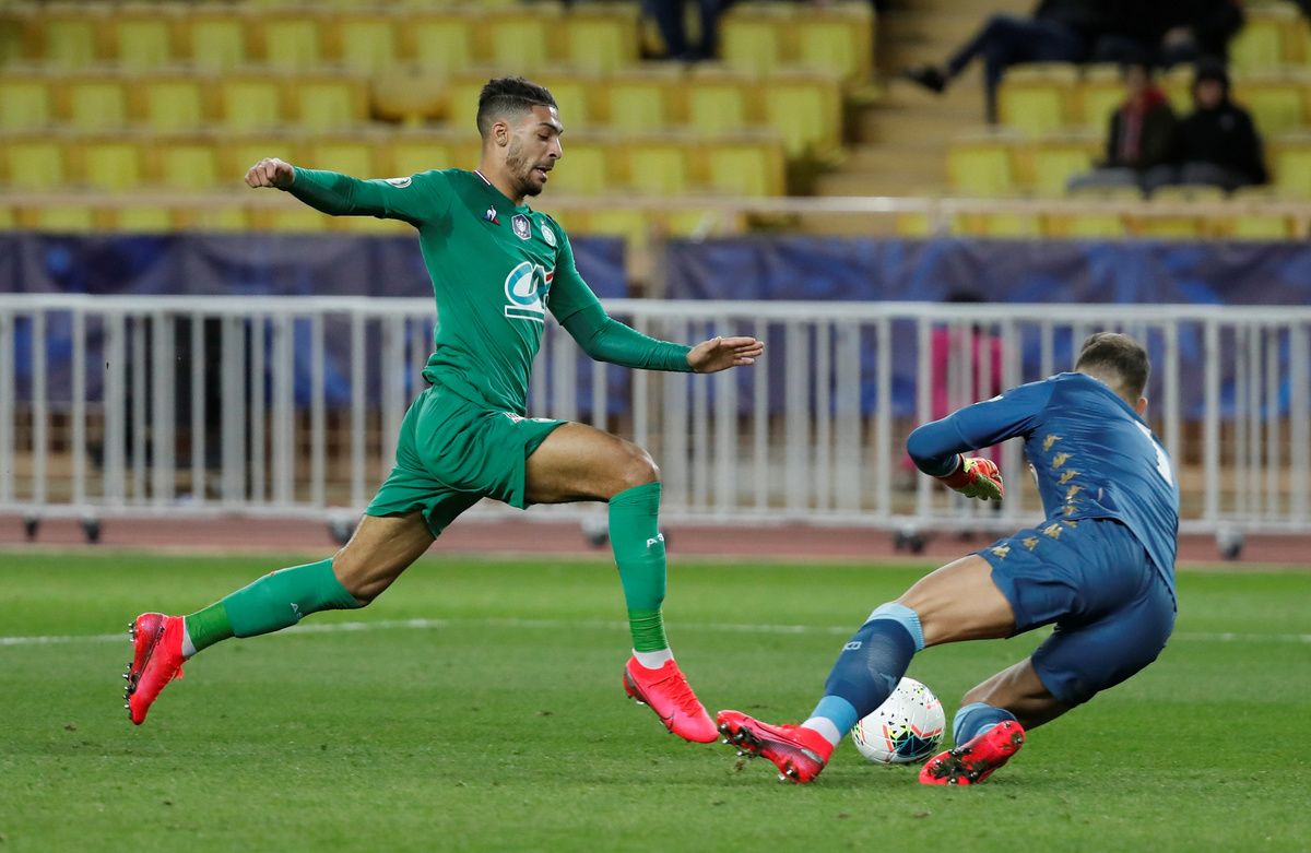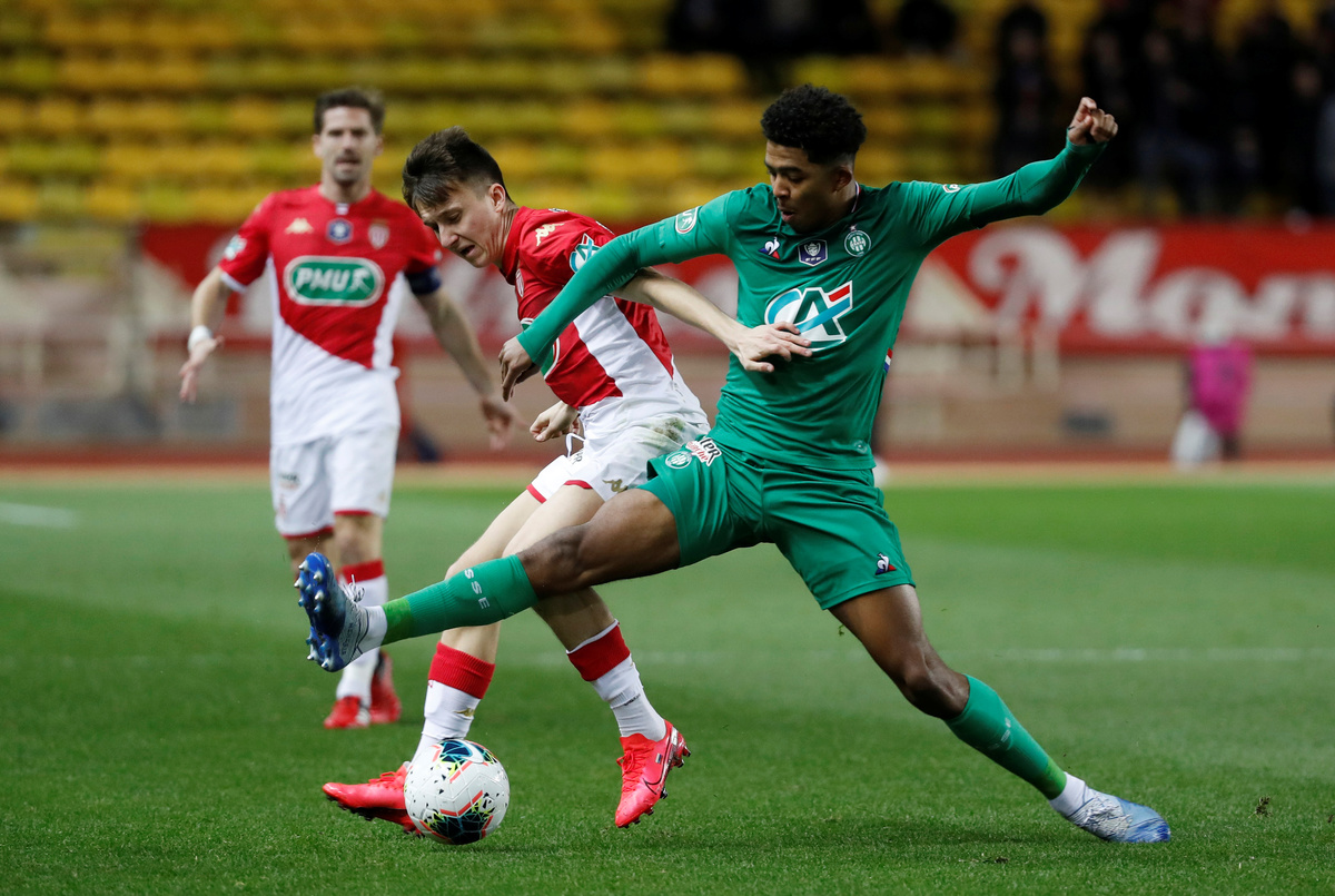 Soccer Football - Coupe de France - Round of 16 - AS Monaco v AS Saint-Etienne - Stade Louis II, Monaco - January 28, 2020 Saint Etienne's Denis Bouanga in action REUTERS/Eric GaillardSoccer Football - Coupe de France - Round of 16 - AS Monaco v AS Saint-Etienne - Stade Louis II, Monaco - January 28, 2020 AS Monaco's Aleksandr Golovin in action with Saint Etienne's Wesley Fofana REUTERS/Eric GaillardSoccer Football - Coupe de France - Round of 16 - AS Monaco v AS Saint-Etienne - Stade Louis II, Monaco - January 28, 2020 AS Monaco's Aleksandr Golovin in action with Saint Etienne's Romain Hamouma and William Saliba REUTERS/Eric GaillardSoccer Football - Coupe de France - Round of 16 - AS Monaco v AS Saint-Etienne - Stade Louis II, Monaco - January 28, 2020 Saint Etienne's Denis Bouanga in action with AS Monaco's Benjamin Lecomte REUTERS/Eric Gaillard