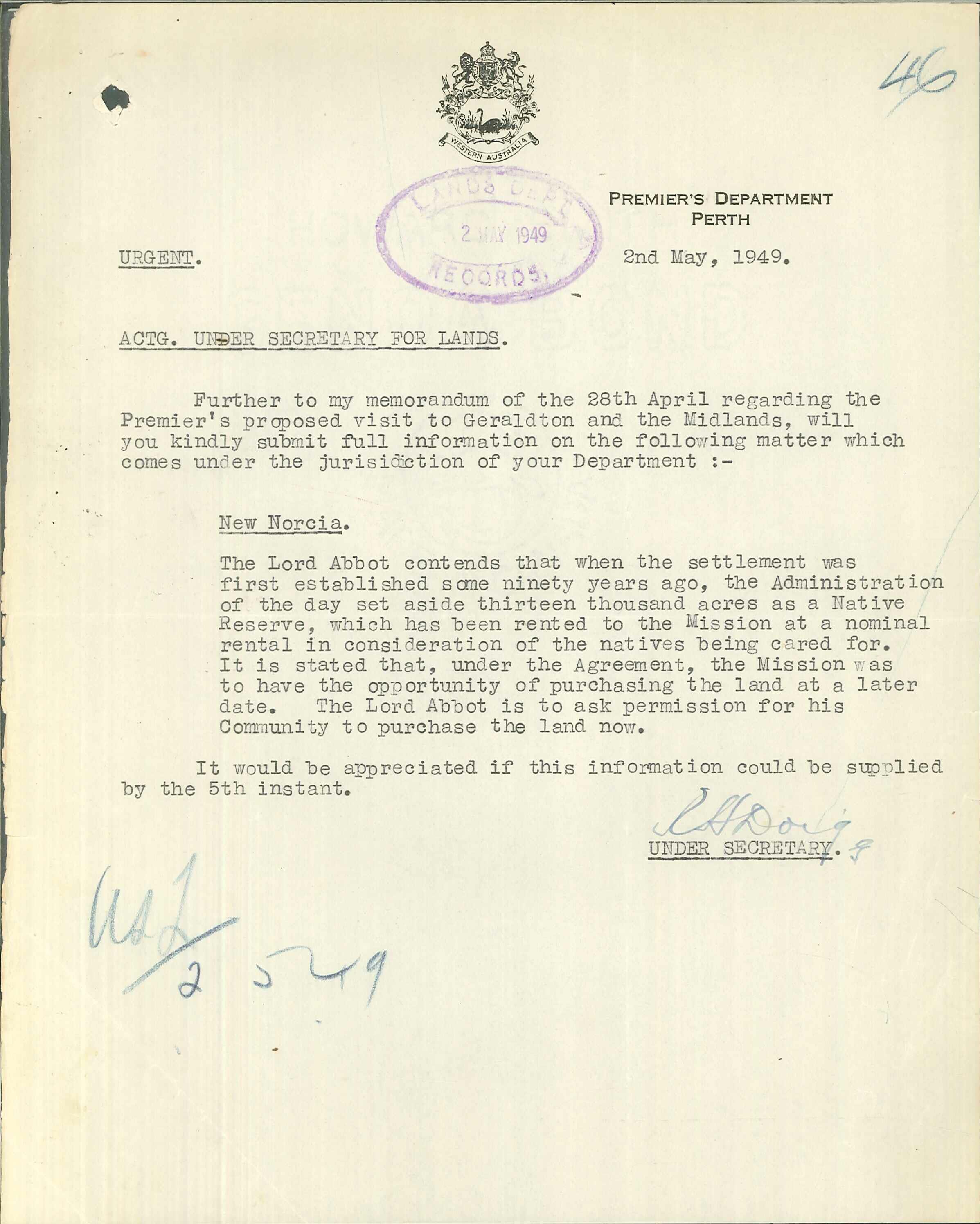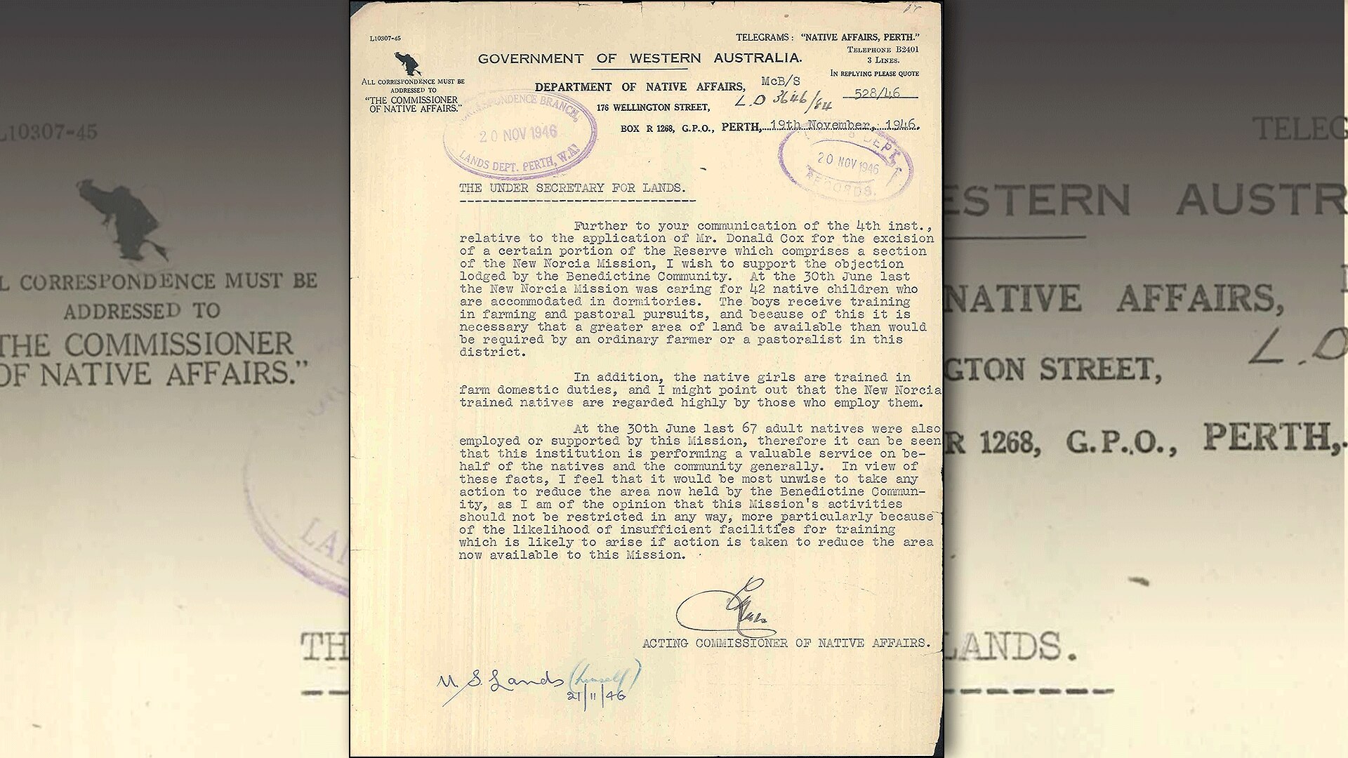 As a letter from the then-assistant commissioner of native affairs shows, there had already been interest from a potential buyer and the Benedictine community had had to fight to hold onto the reserve.