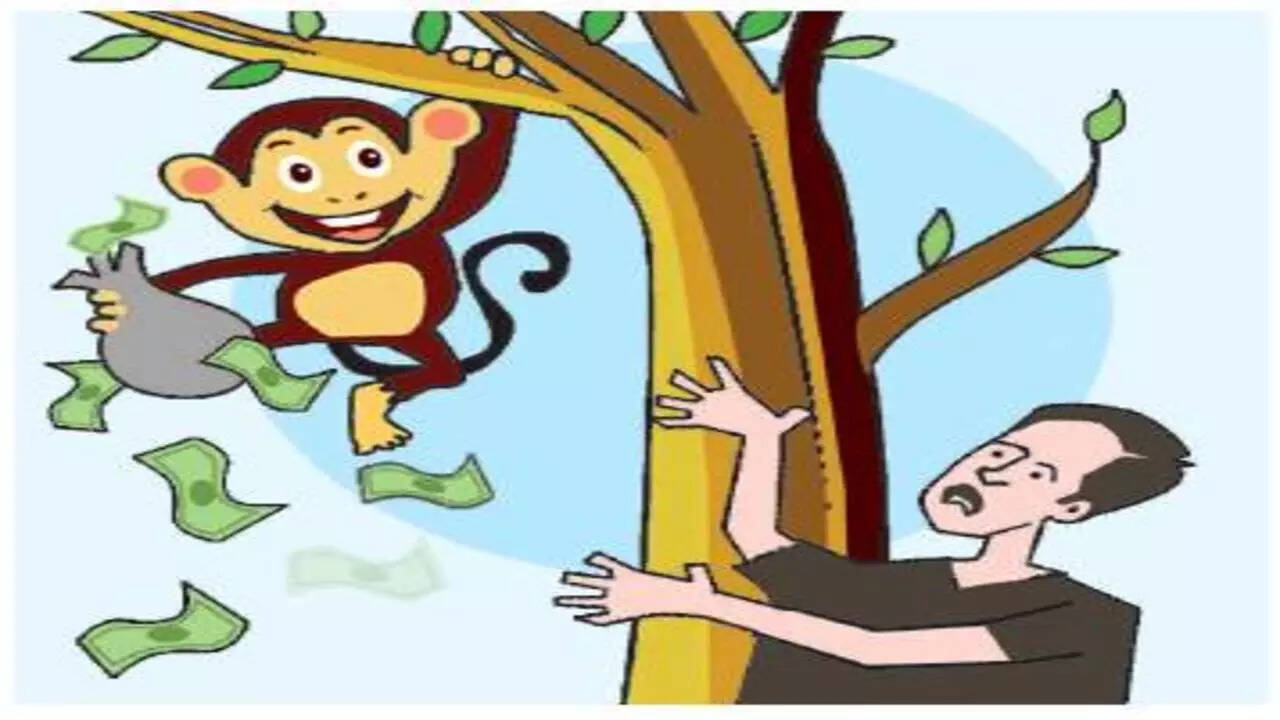 A monkey made off with a bag, containing Rs 1 lakh in cash, left unattended in an autorickshaw near Singrampur police outpost, mistaking it for food. Disappointed that there was nothing to eat, it started scattering the bits of paper from atop a tree, triggering a frenzied scramble among passersby to scoop them up, and equally desperate pleas from the owner to get the money back.