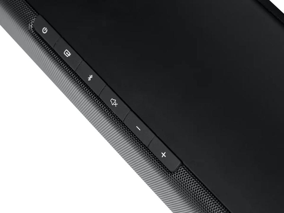 The soundbar measures a meter long and comes with a comprehensive IR remote control that can be used to adjust all the settings from the comfort of your armchair. The essential commands like volume and mute can also be adjusted using the TV’s remote thanks to support for eARC and CEC. The soundbar remote also features controls for switching the input source, selecting DSP modes, skipping tracks while streaming with Bluetooth, plus a balance adjustment between left and right channels.