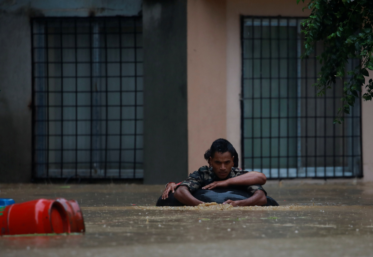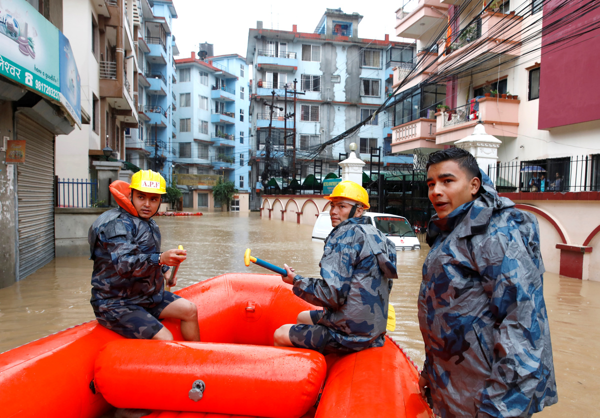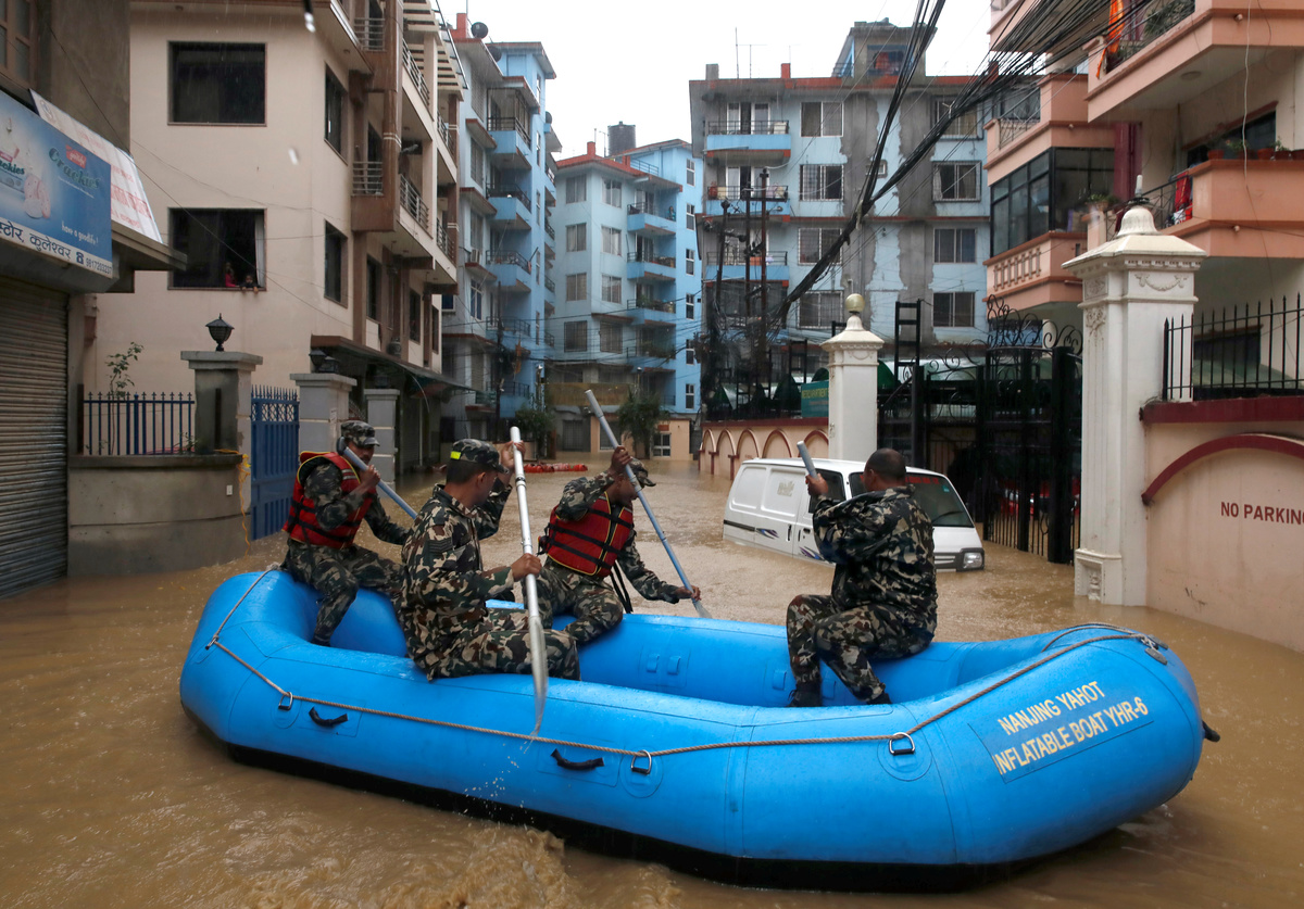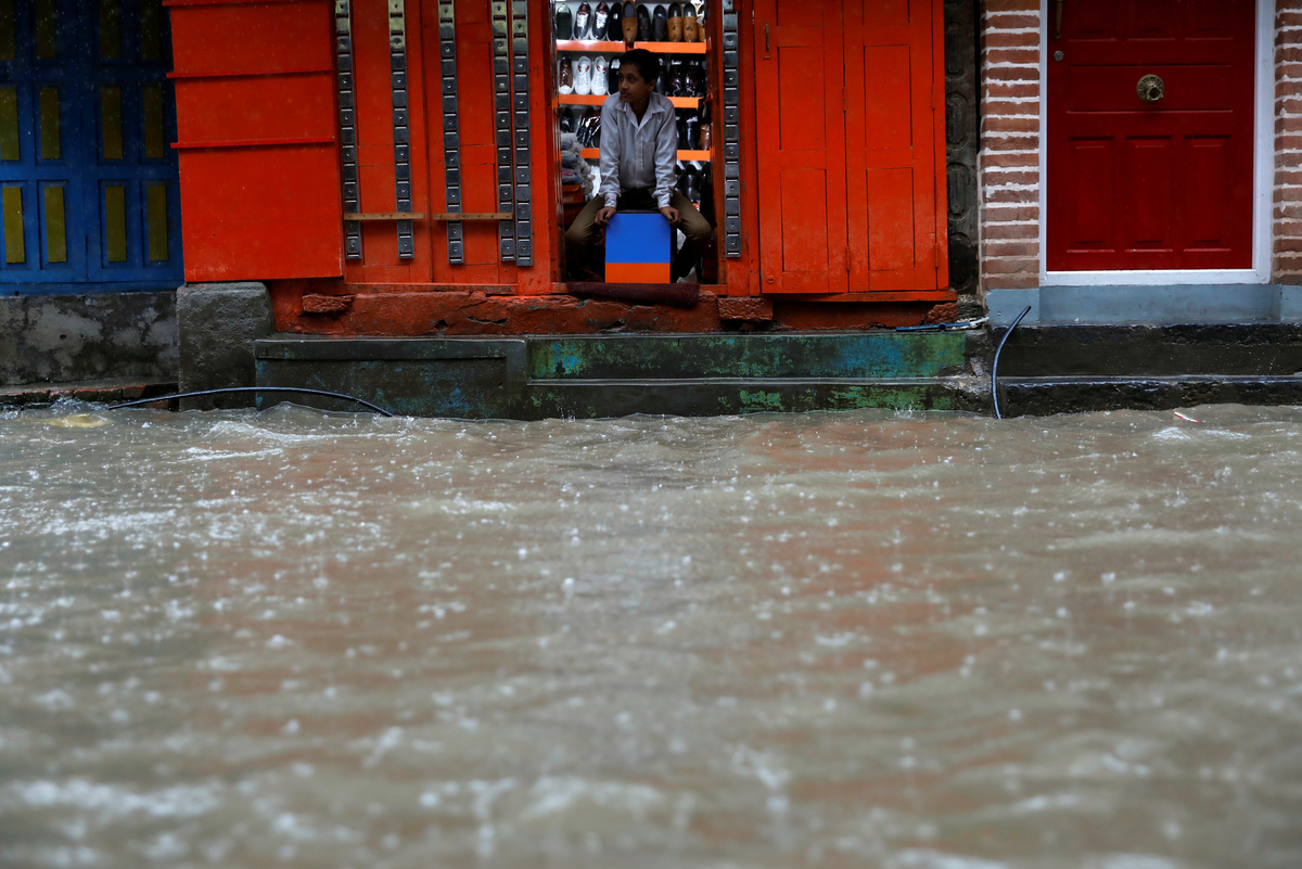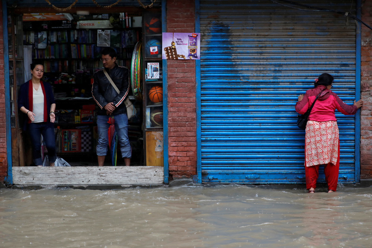 A member of Nepalese army helps a man to reach dry ground from a flooded colony in Kathmandu, Nepal July 12, 2019. REUTERS/Navesh ChitrakarResidents look from a balcony to the flooded colony in Kathmandu Nepal July 12, 2019. REUTERS/Navesh ChitrakarResidents look from a balcony to the flooded colony in Kathmandu Nepal July 12, 2019. REUTERS/Navesh ChitrakarResidents walk towards dry ground from a flooded colony in Kathmandu, Nepal July 12, 2019. REUTERS/Navesh ChitrakarMembers of Nepalese army on a boat head to rescue residents at a flooded colony in Kathmandu, Nepal July 12, 2019. REUTERS/Navesh ChitrakarA man carrying a child walks towards the dry ground from a flooded colony in Kathmandu, Nepal July 12, 2019. REUTERS/Navesh ChitrakarMembers of Armed Police Force on a boat head to rescue residents at a flooded colony in Kathmandu, Nepal July 12, 2019. REUTERS/Navesh ChitrakarResidents walk towards the dry ground from a flooded colony in Kathmandu, Nepal July 12, 2019. REUTERS/Navesh ChitrakarA boy looks towards the flooded street from a shop as it rains in Lalitpur, Nepal July 12, 2019. REUTERS/Navesh ChitrakarA woman struggles to walk along the flooded street as monsoon season arrives in Lalitpur, Nepal July 12, 2019. REUTERS/Navesh Chitrakar