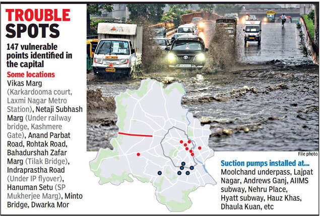 NEW DELHI: This year, Delhi government’s Public Works Department has identified 147 vulnerable spots that are most prone to waterlogging during the rains.