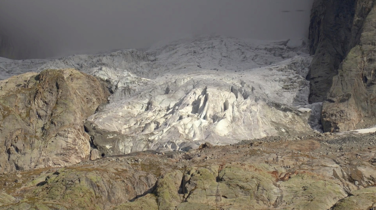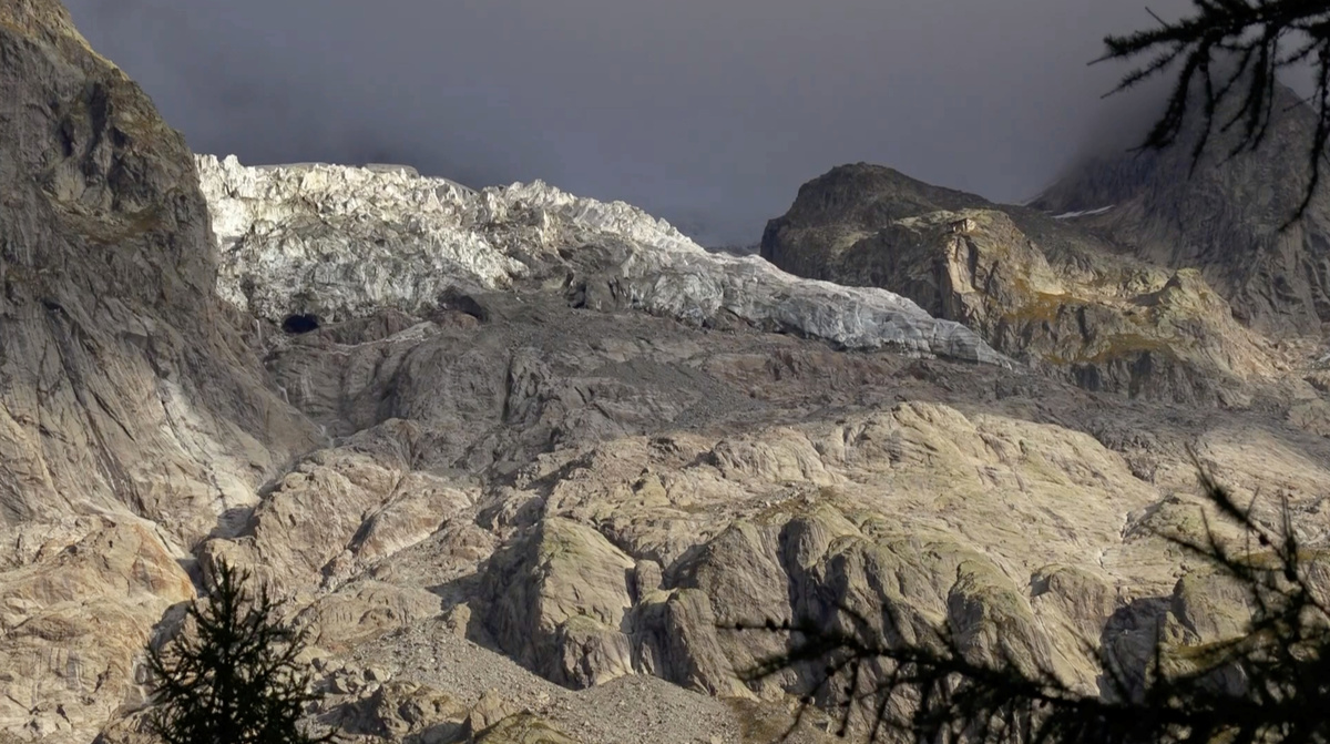 A view of the Planpincieux glacier along the Italian side of the Mont Blanc massif in the area of Planpincieux, Aosta, Italy September 25, 2019, in this still image taken from a video footage. Local Team/REUTERS TV via REUTERS