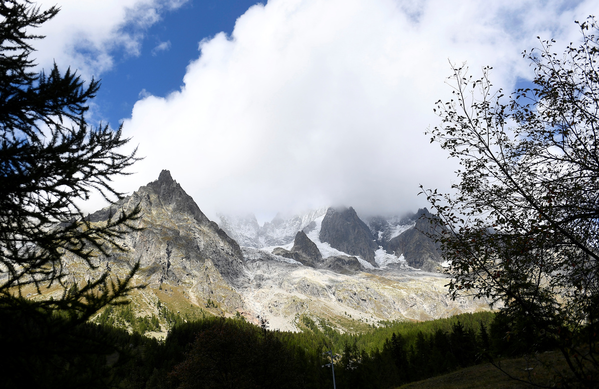 A general view of the Italian side of the Mont Blanc massif area, with the Planpincieux glacier, Aosta, Italy, September 25, 2019. REUTERS/Flavio Lo Scalzo