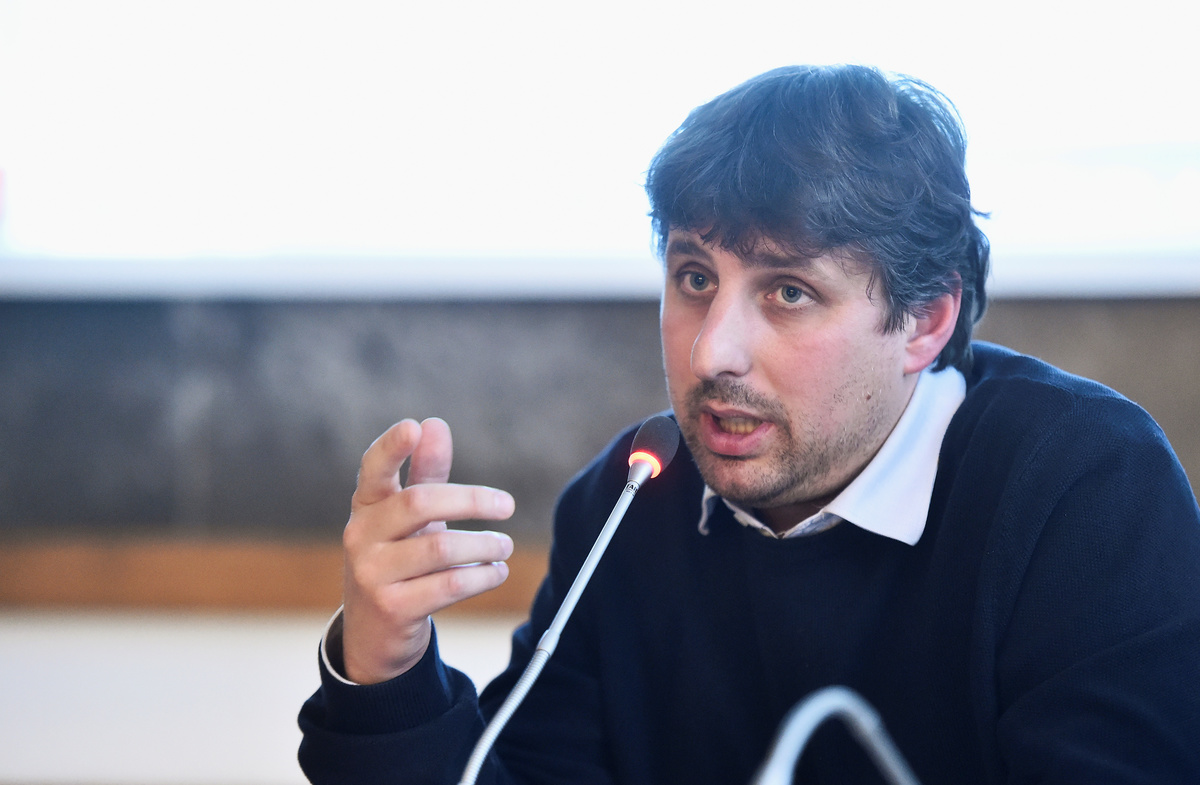Mayor of Courmayeur Stefano Miserocchi speaks to the media and local residents after Italian authorities closed roads in and out of the town, as experts warn that parts of a glacier on Mont Blanc could collapse, in Courmayeur, Aosta, Italy, September 25, 2019. REUTERS/Flavio Lo Scalzo