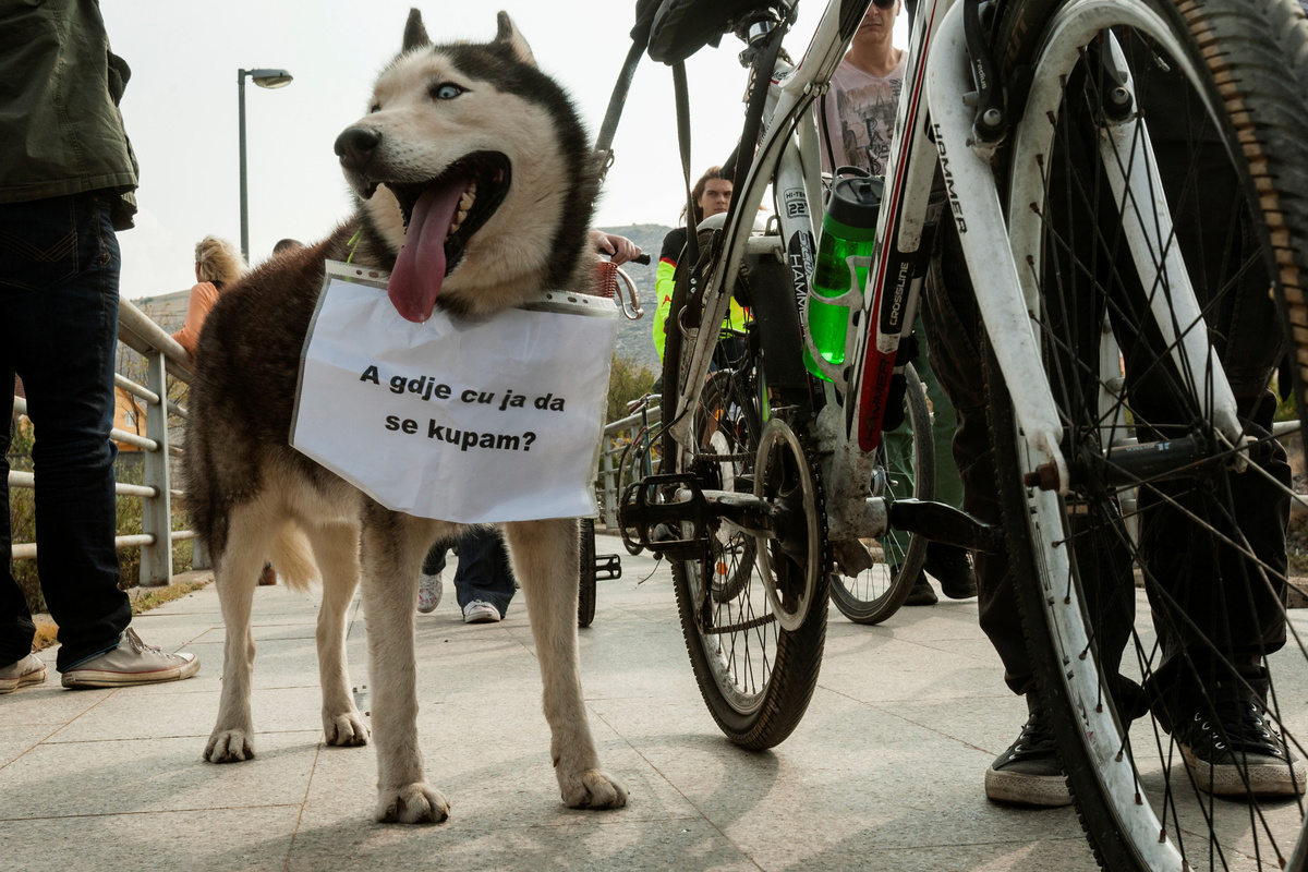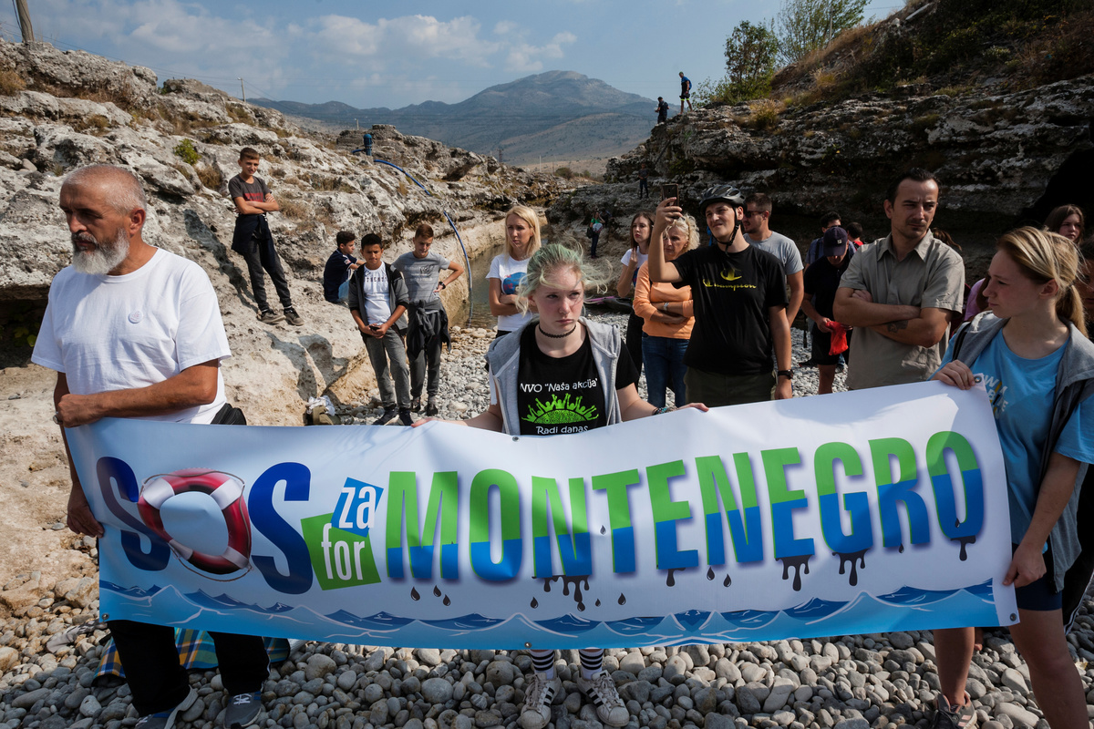 At Saturday's demonstration, some of the protesters carried placards reading "The Cijevna is our Fortune". "Don't (put) the Cijevna in pipes," red a banner spread along a bridge over a dry river bed, where protesters gathered.