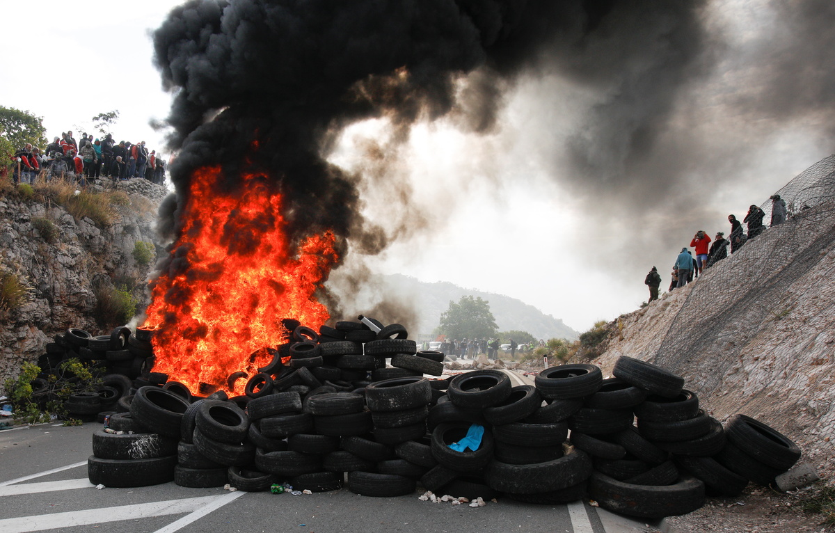 Police used gas to disperse hundreds of protesters, some of whom threw rocks, bottles and firecrackers as church figures arrived by helicopter. Some people burned tyres and sat on roads.