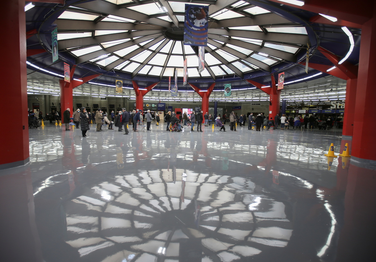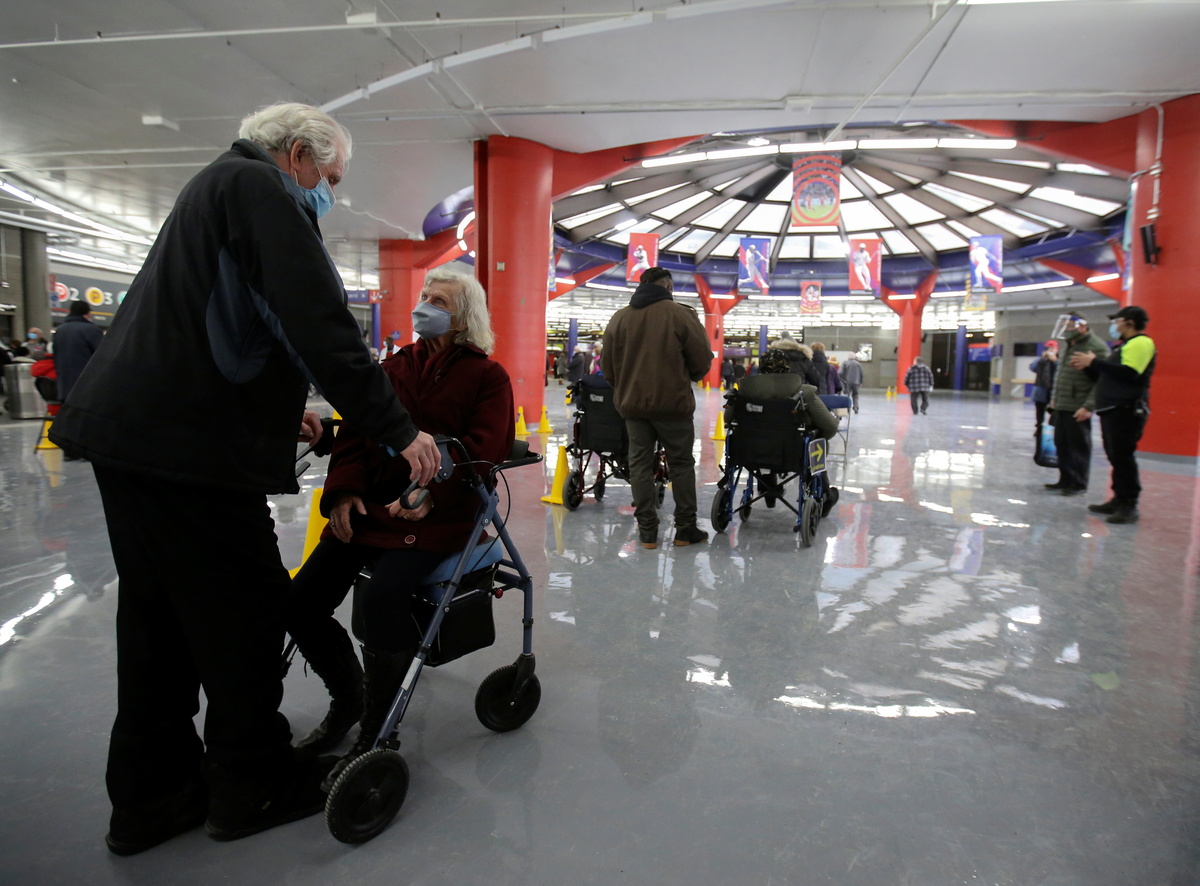 The Quebec government is wrestling with plans to bring elderly residents to inoculation sites like the stadium since the Pfizer vaccine's cold storage requirements make it impossible to transport the vaccine to individual homes.